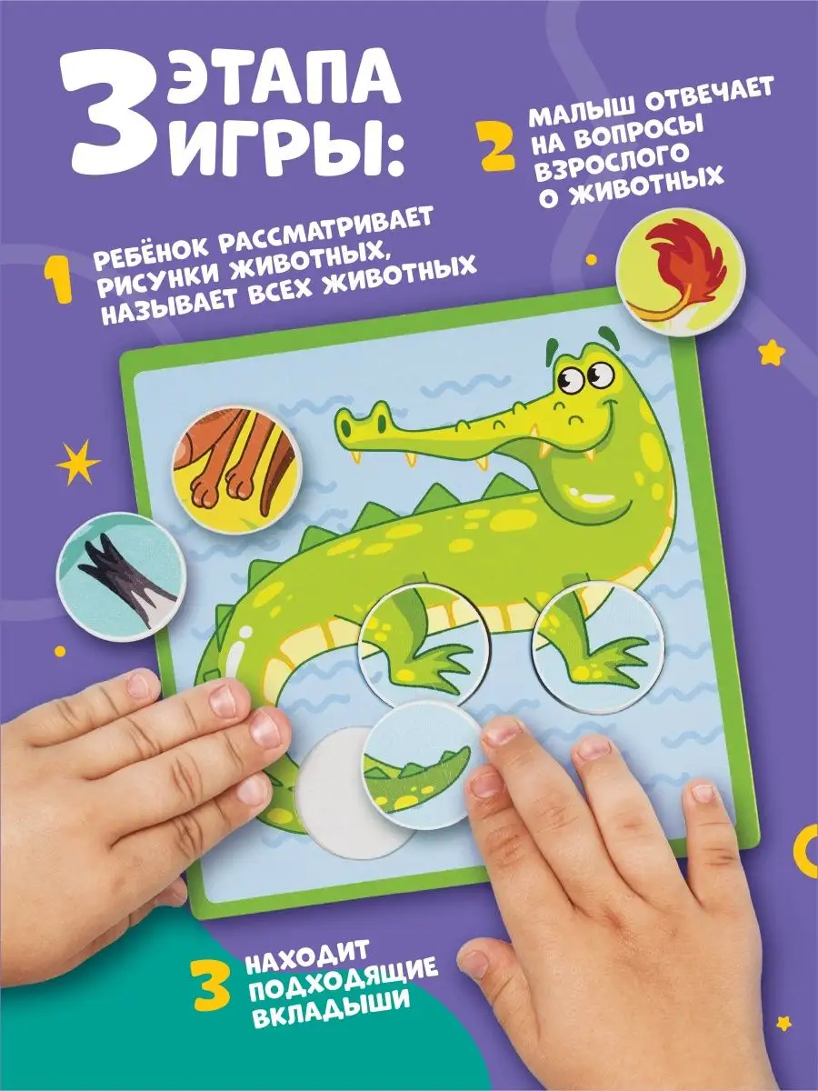 Комплектация Прочная и удобная коробка для хранения игры - 1 шт; планшет-рамка для деревянных вкладышей - 4 шт; деревянные вкладыши - 9 шт; Инструкция для родителей - 1 шт