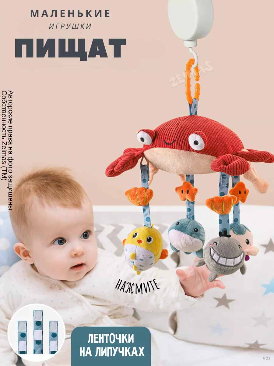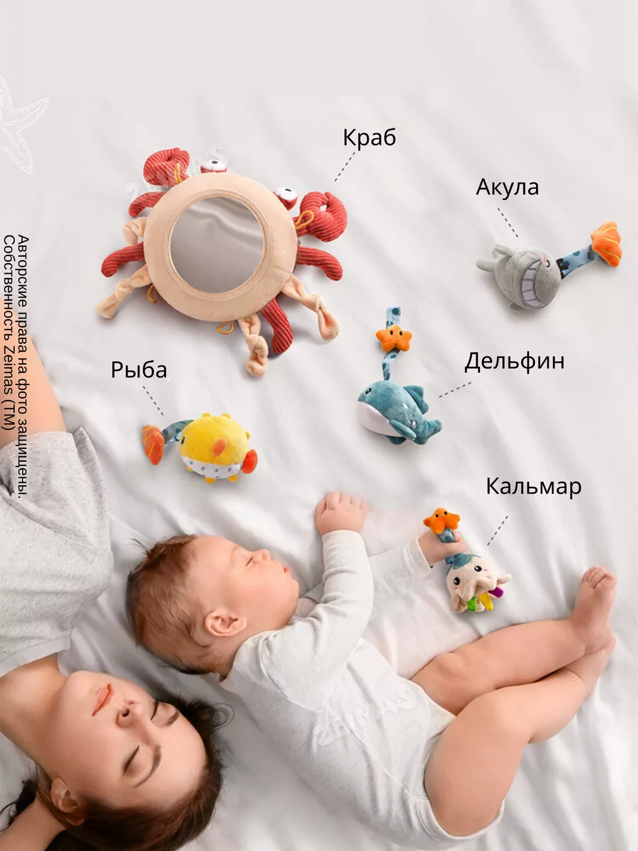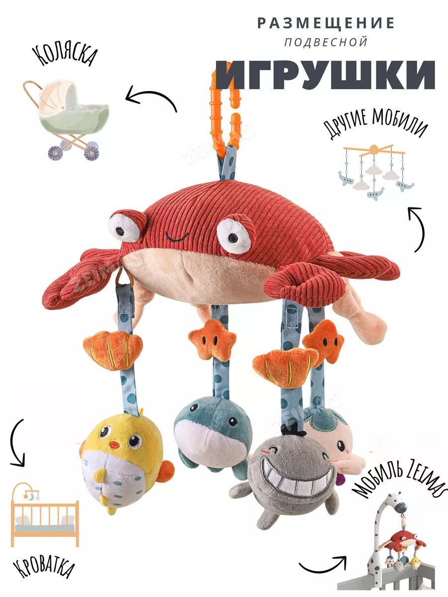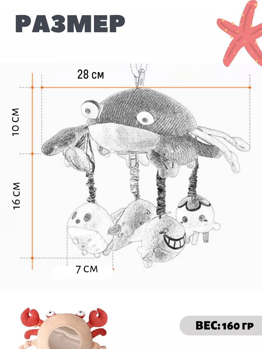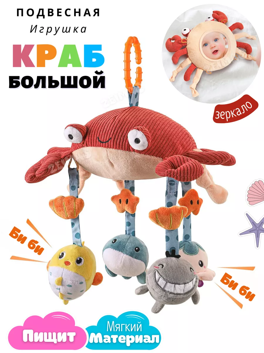 Комплектация Игрушка подвеска Краб; крепление в комплекте; Игрушки мягкие пищалки, зеркало мягкое