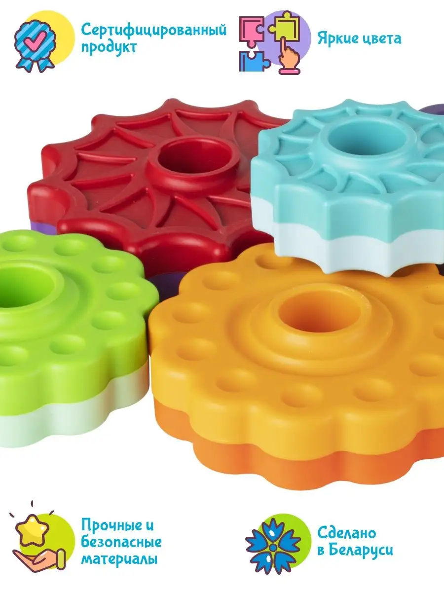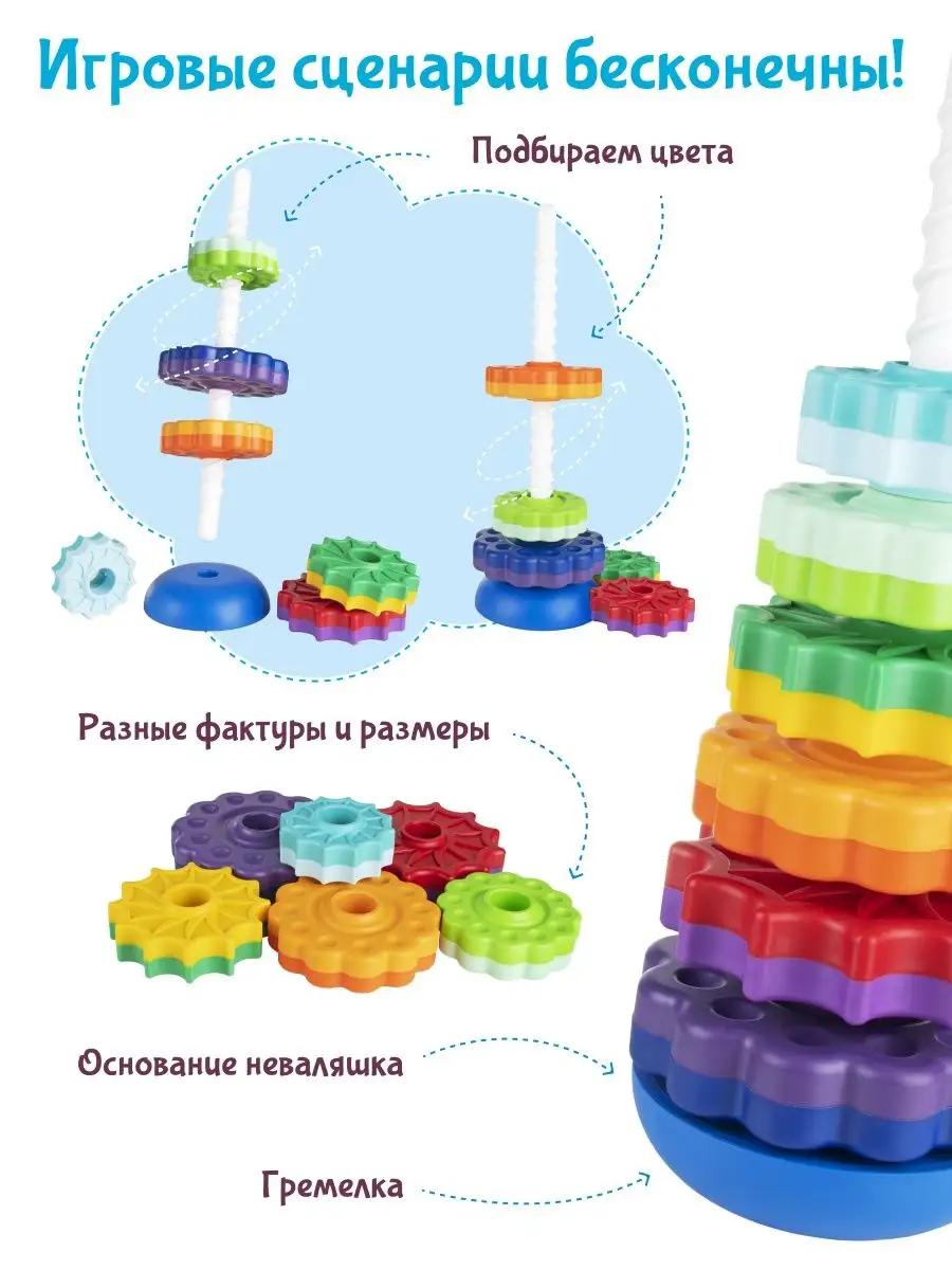 Артикул 68889747 Материал игрушки пирамидка пластиковая; шестеренки пластиковые; сортер пластиковый