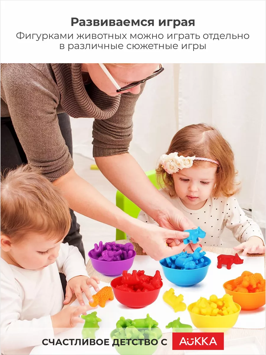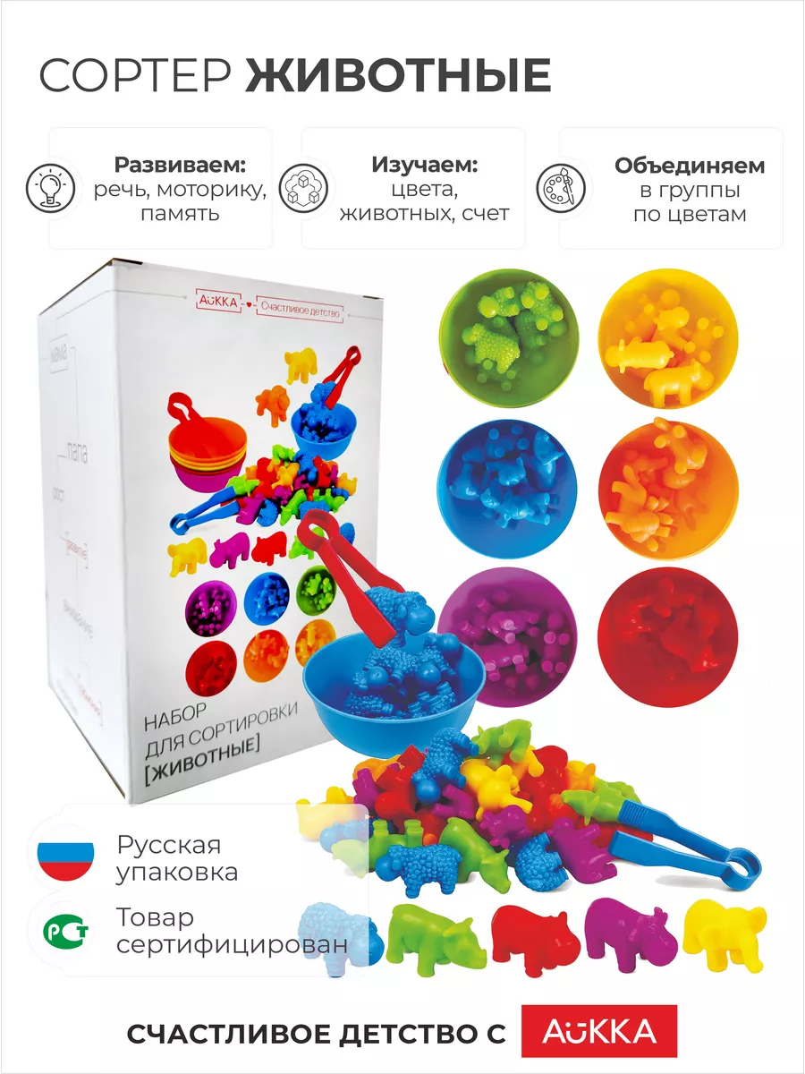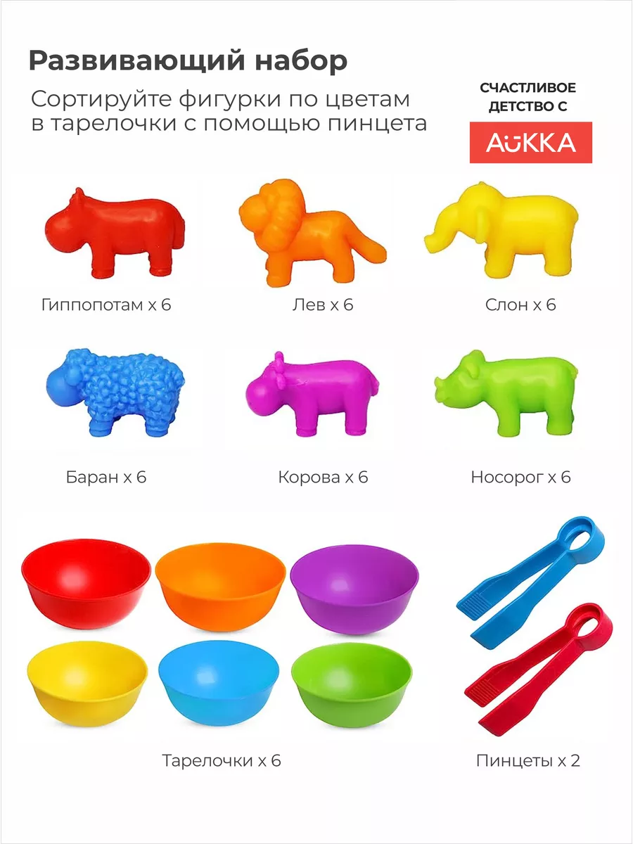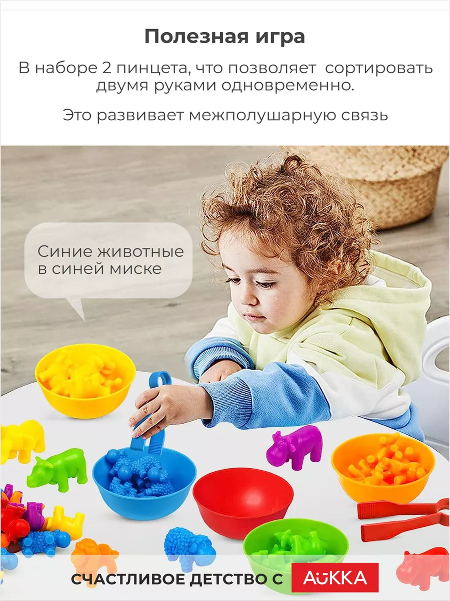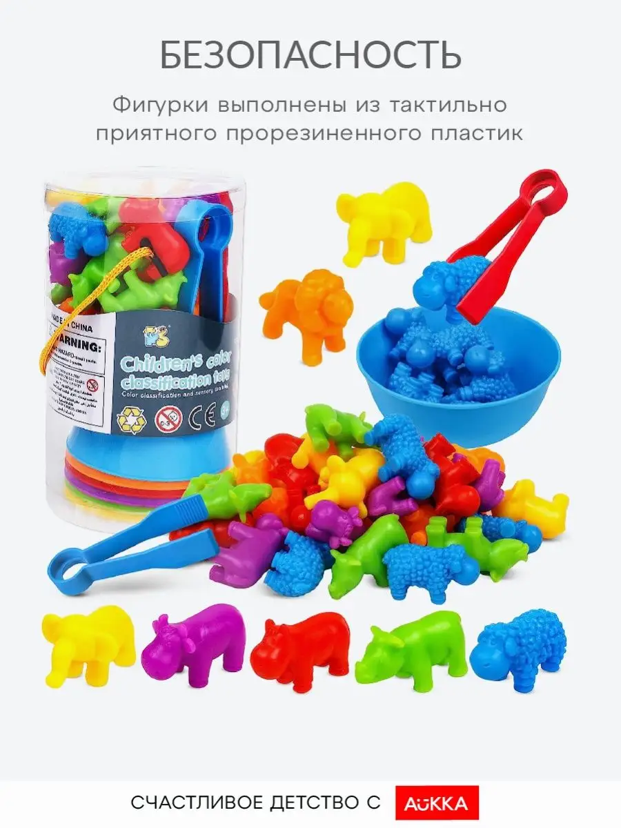 Развивающие игры Монтессори сортер Животные с пинцетом