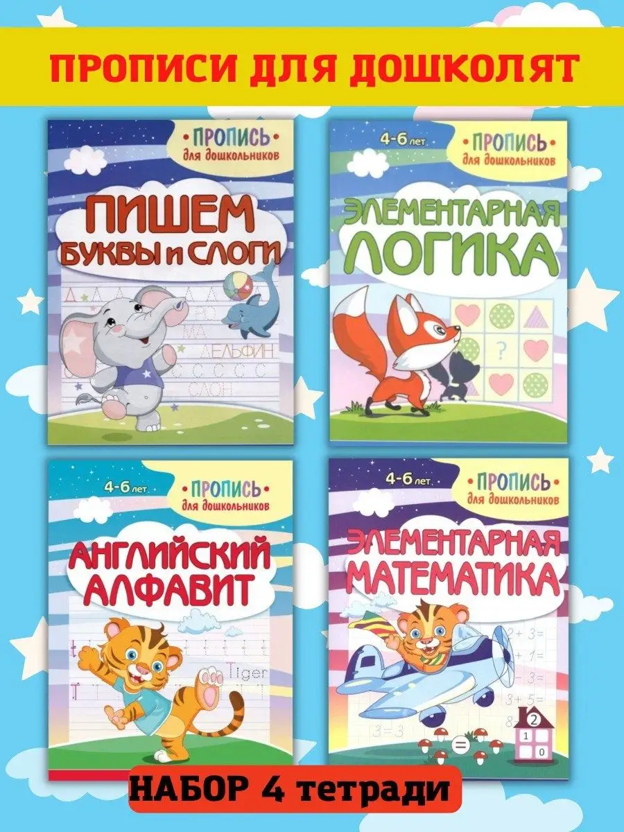 Описание: Набор 4 прописи. Пропись-отличное начало ознакомиться с буквами и словам. Формат прописи совпадает с форматом школьной тетради.Дети научатся узнавать буквы в книгах, составлять из них первые слова.