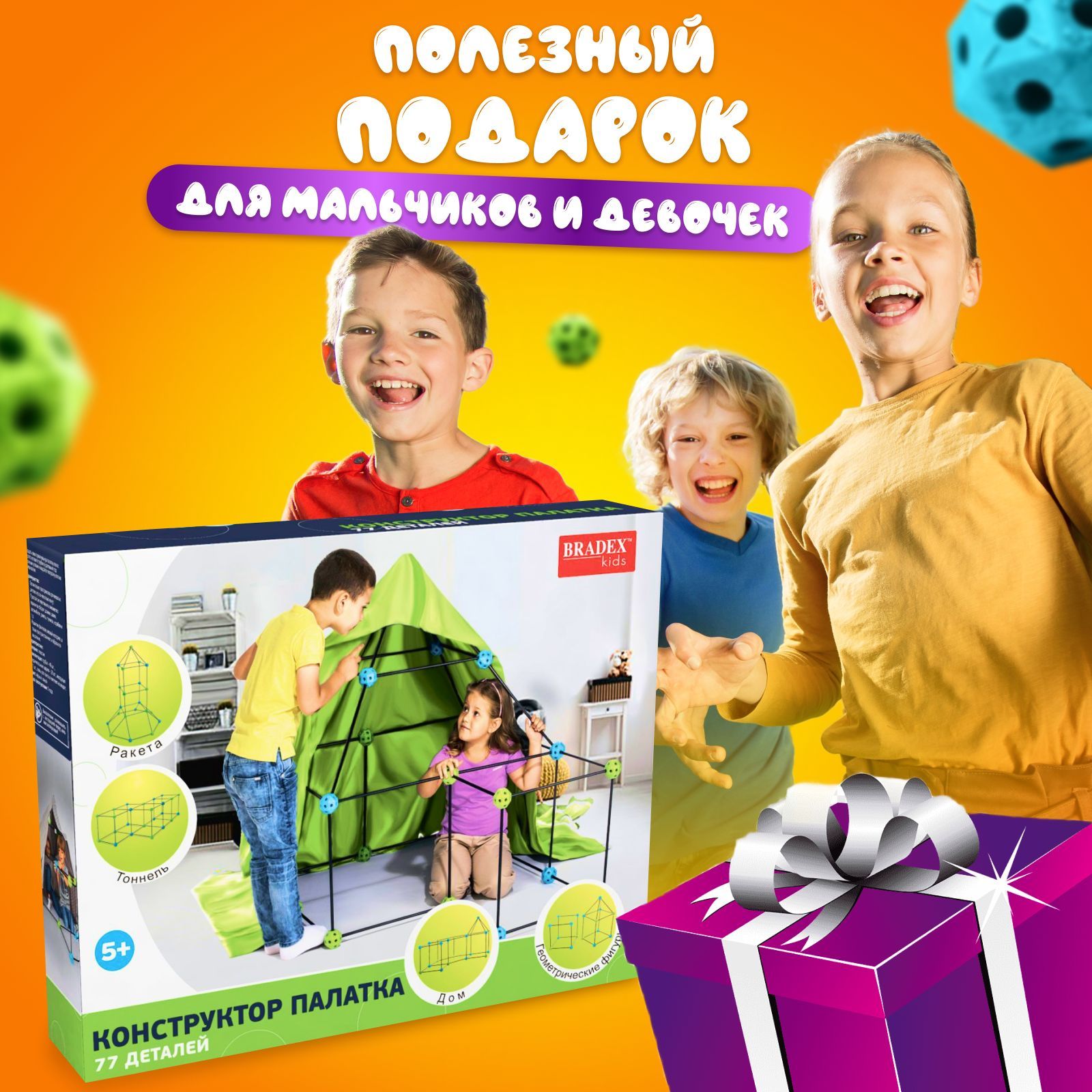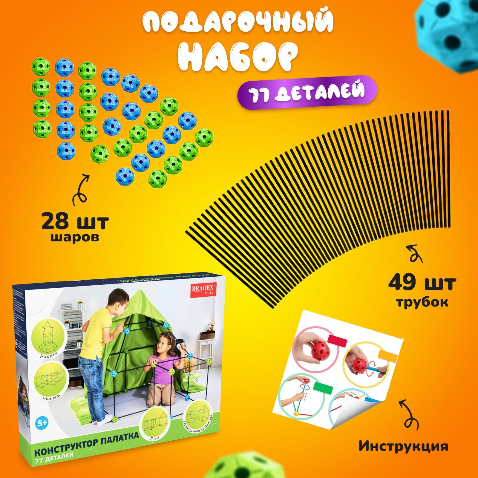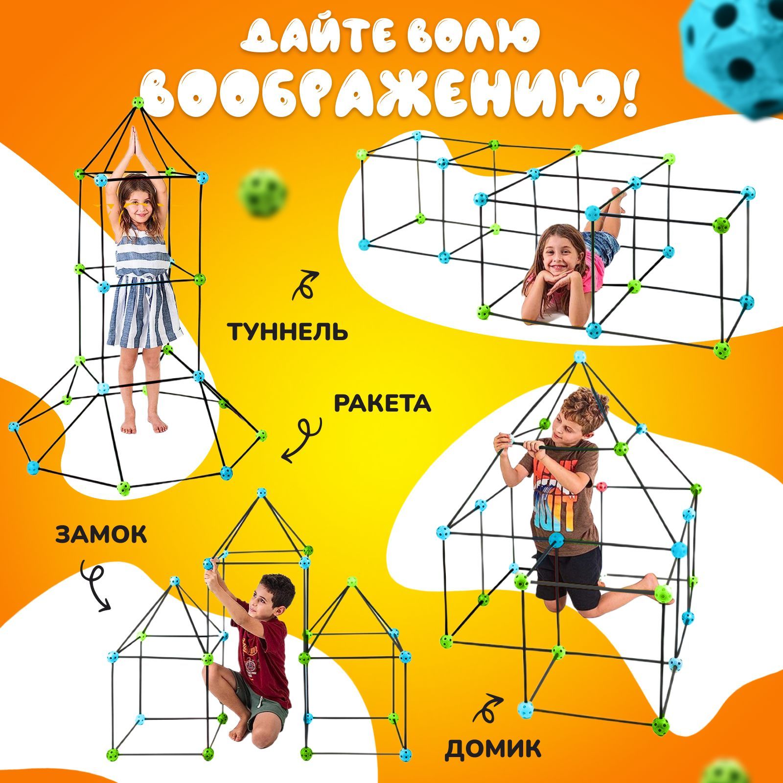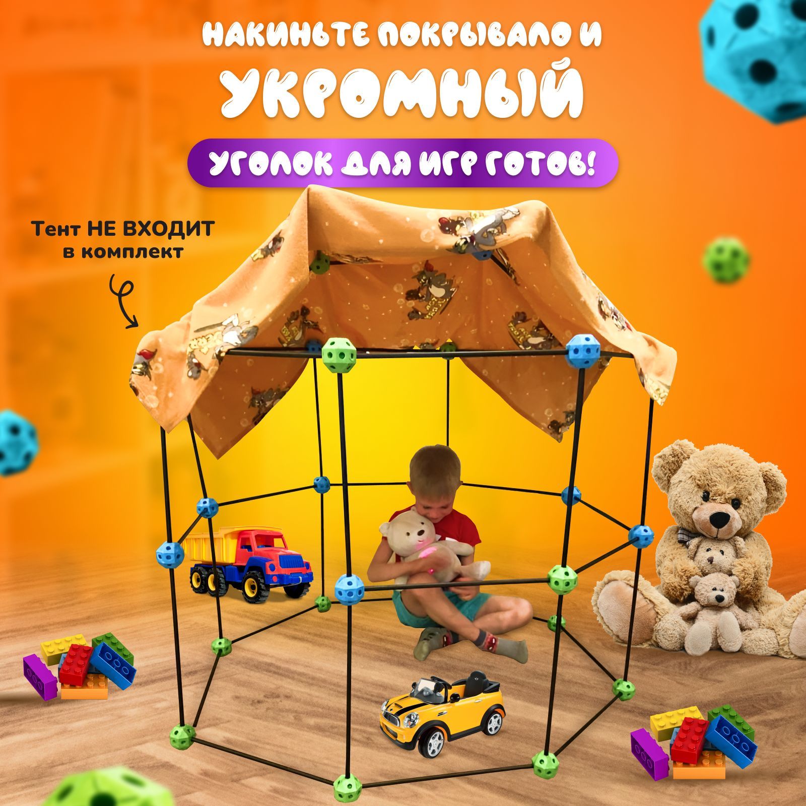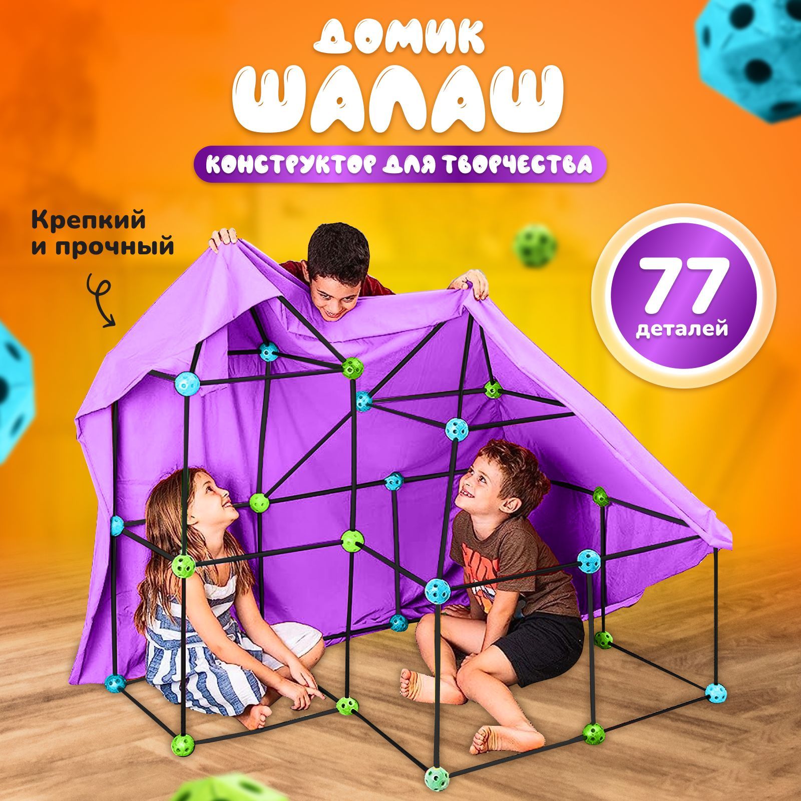 Развивающий 3D конструктор для мальчиков и девочек. 77 деталей. Палатка детская игровая. Для постройки домиков и шалашей