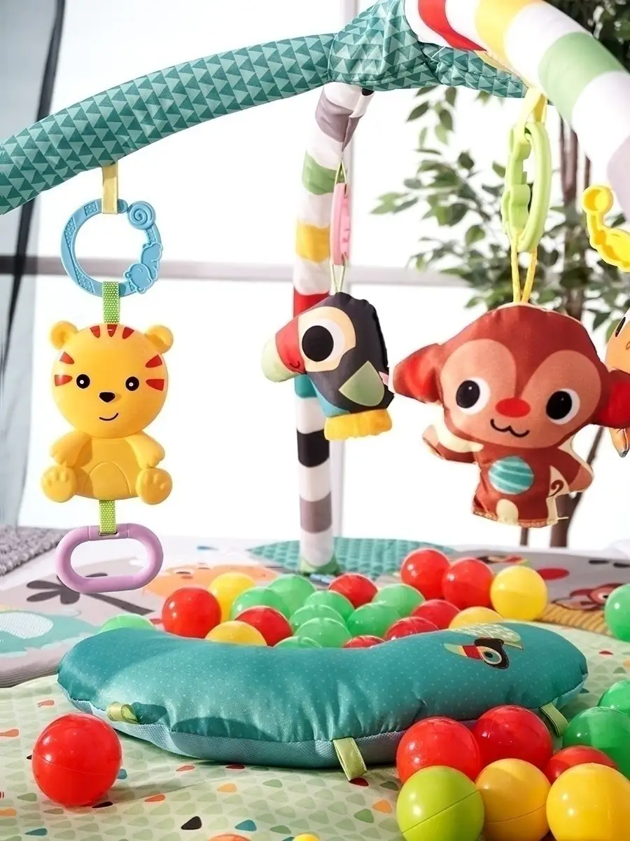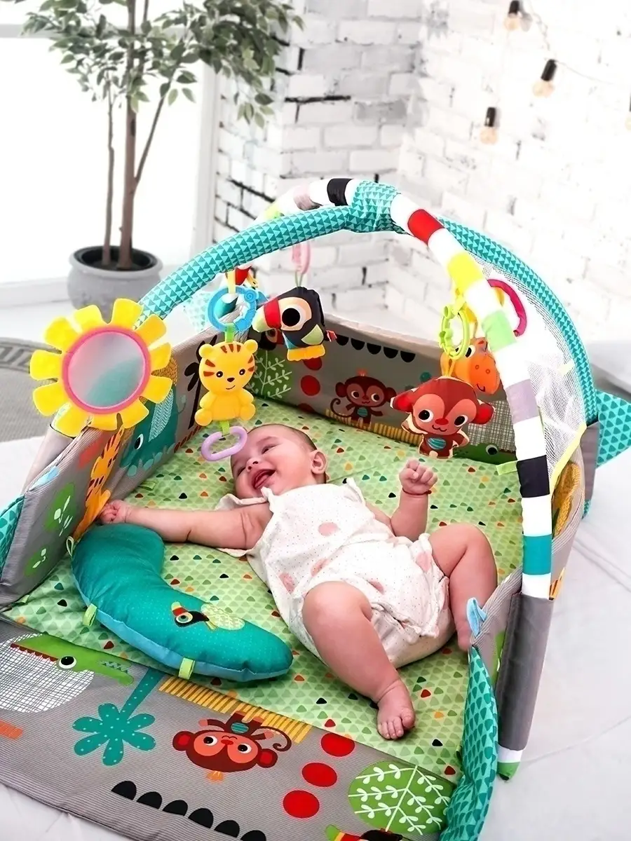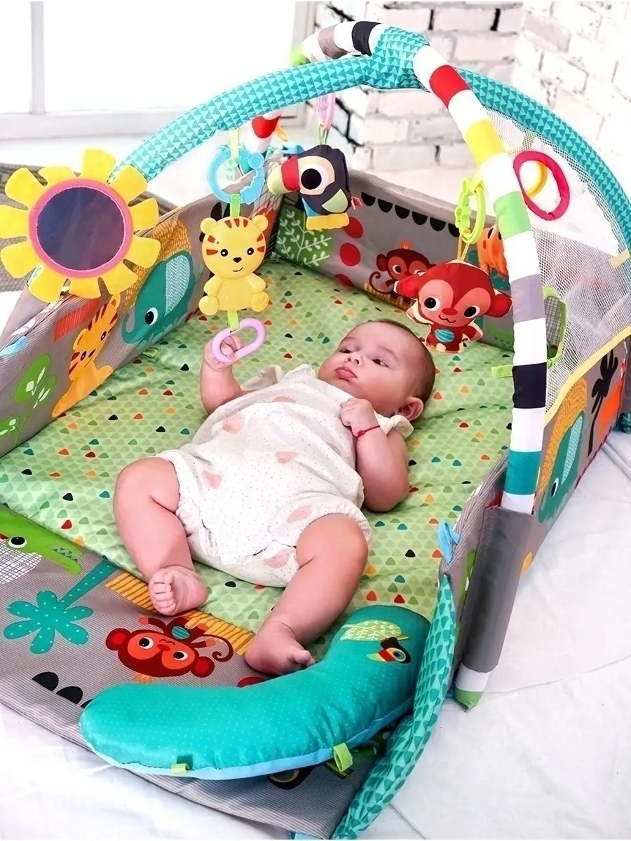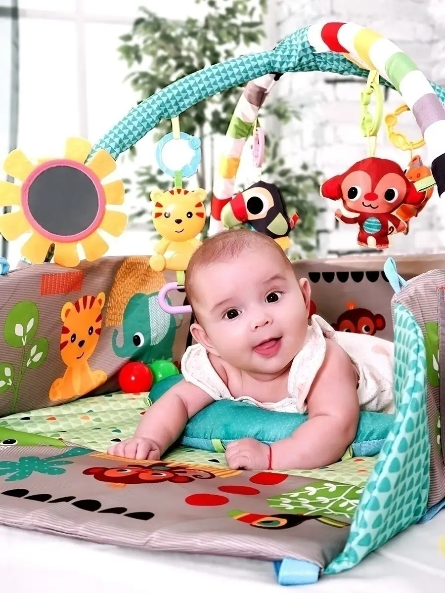 Особенности игрового коврика Игровой коврик; с подвесными игрушками; Развивающий коврик для новорожденного