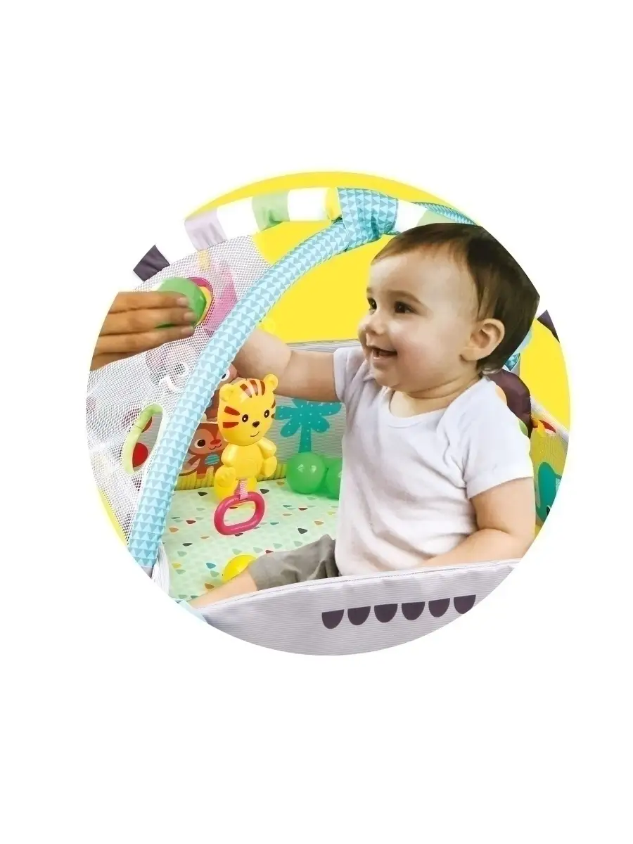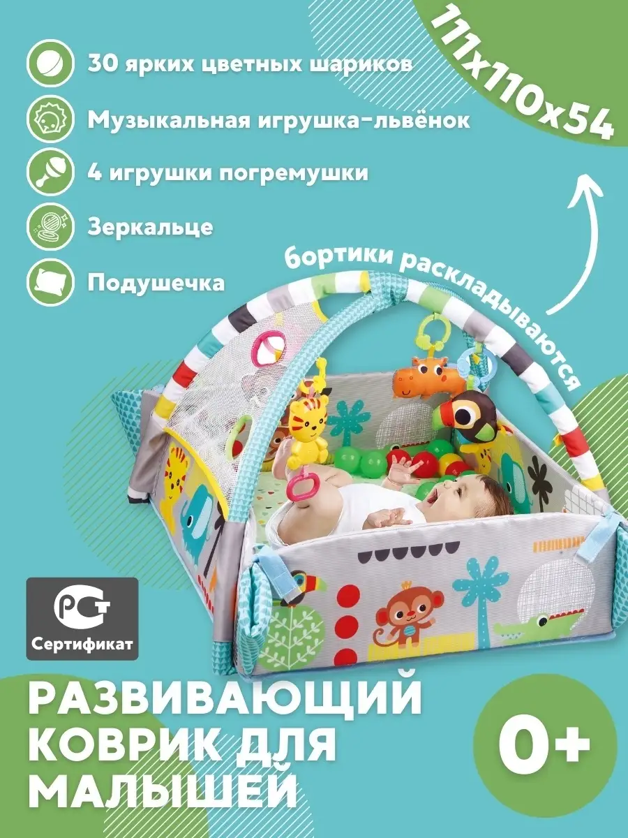 Комплектация 30 шариков; музыкальная игрушка; Погремушки; Зеркальце; Детский коврик