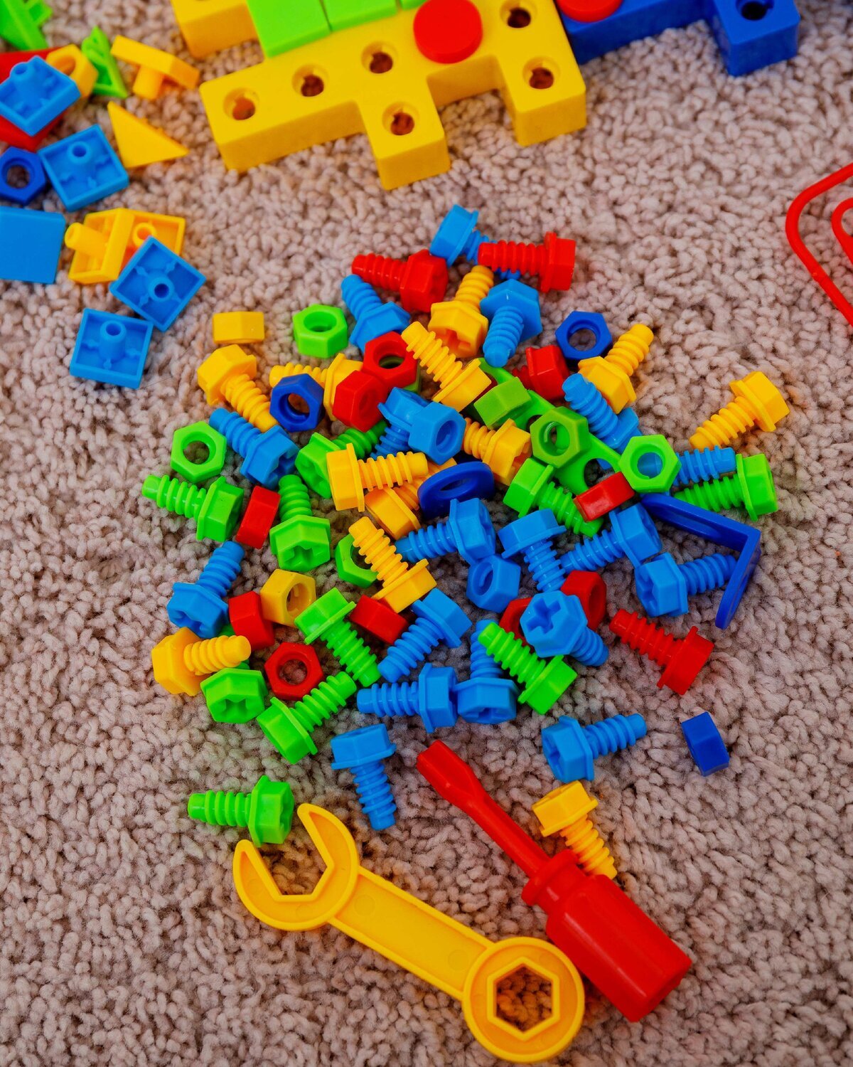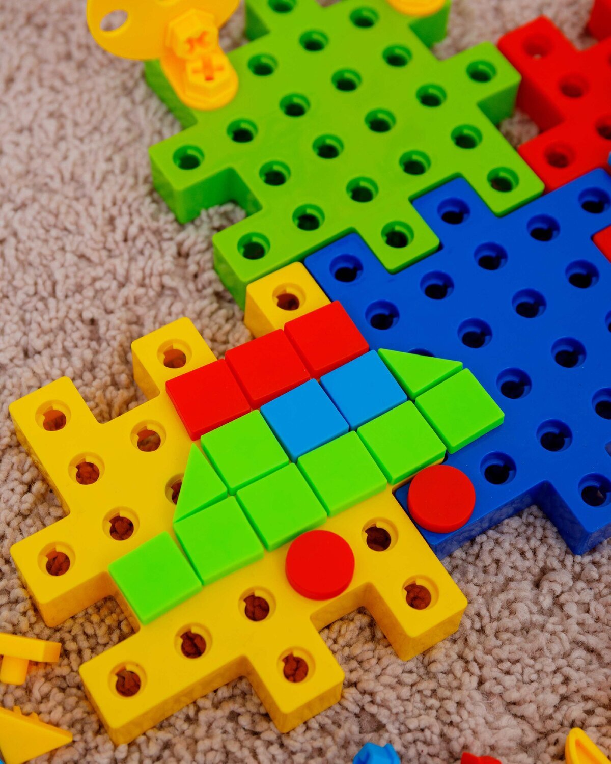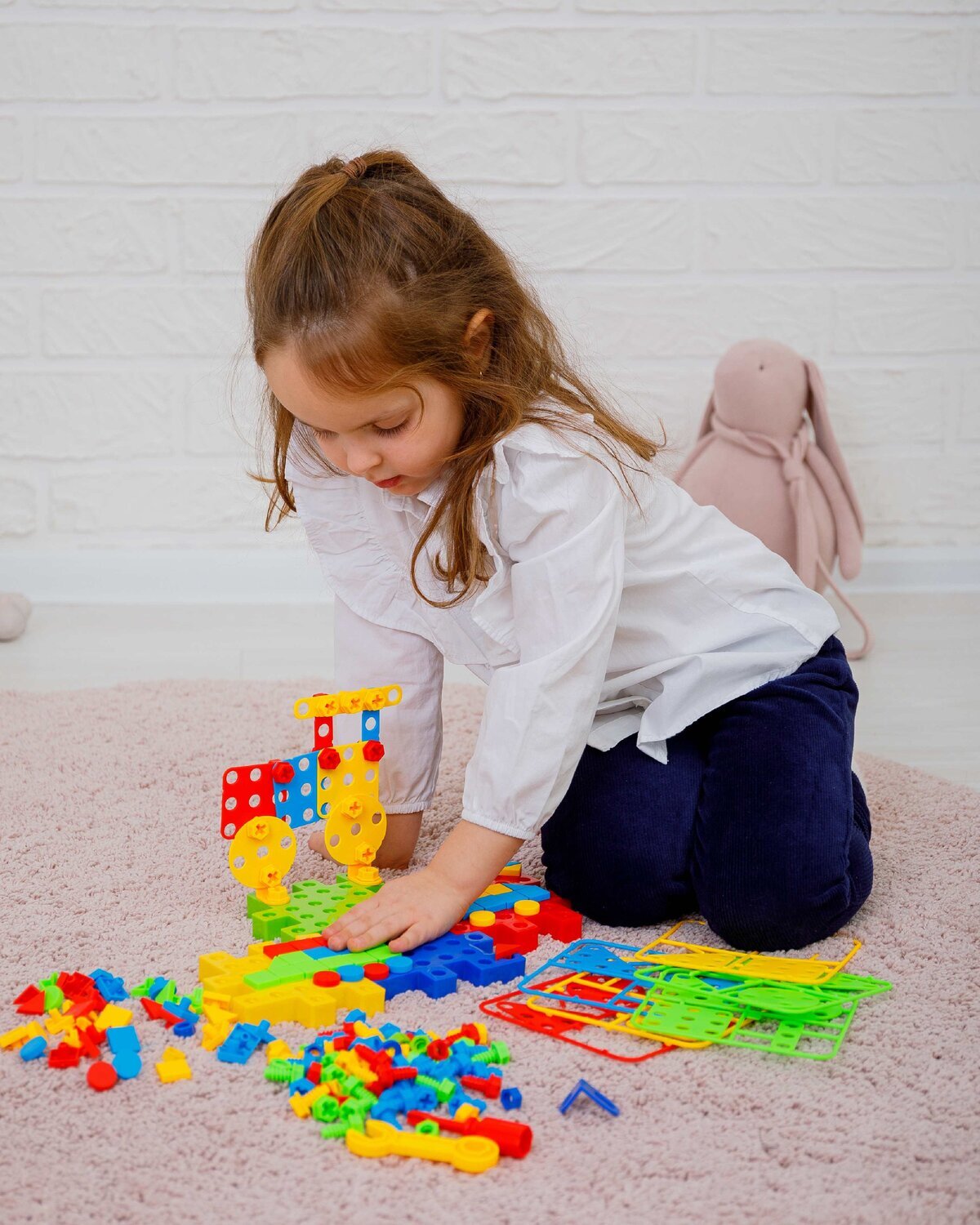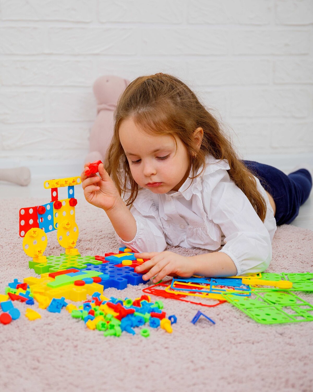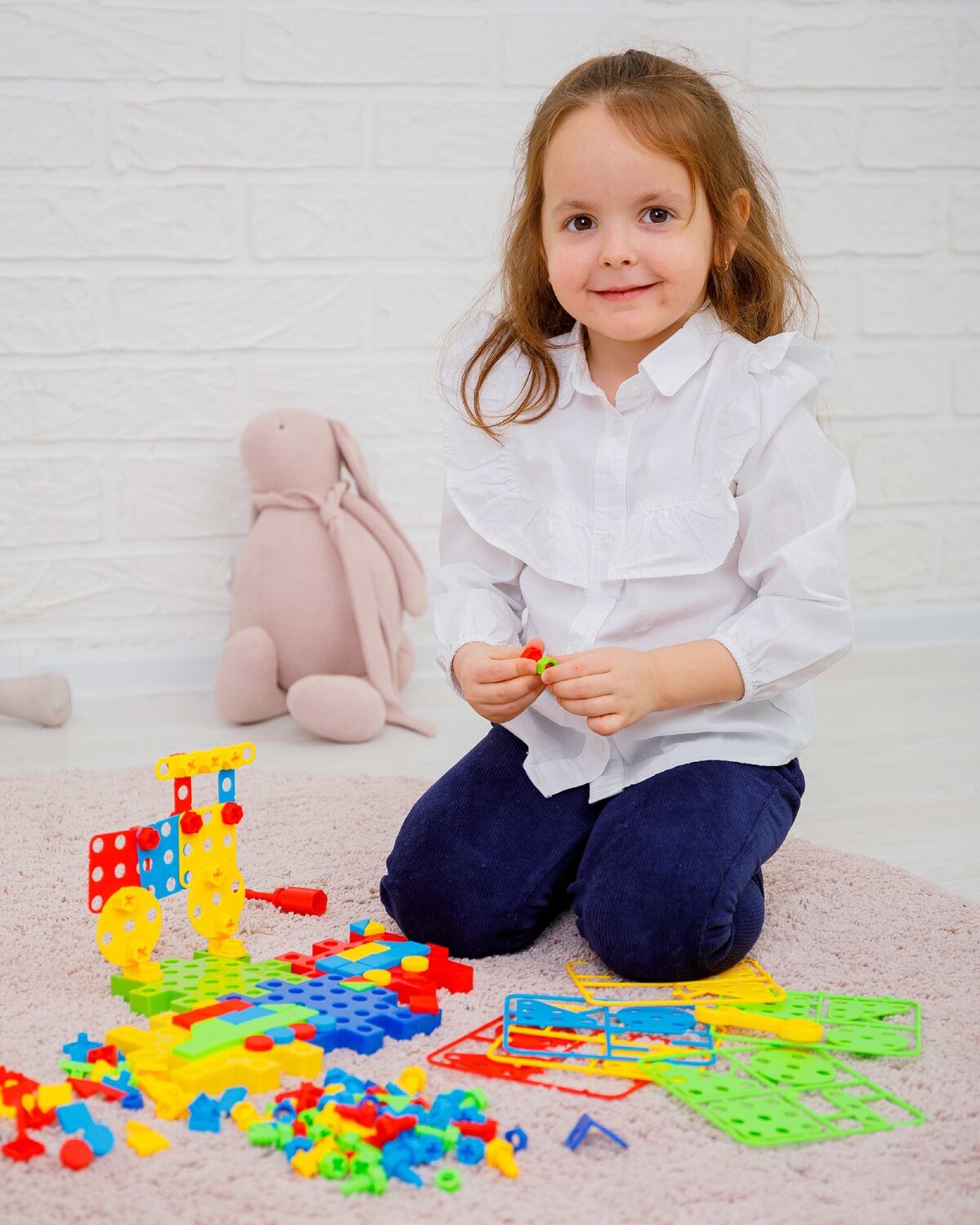 В комплект входит 202 детали, в том числе : 4 основы для конструктора , 28 деталей для крепления, 1 отвертка , 1 разводной ключ,35 гаек, 60 болтов, 72 элемента мозаики . Вес: 0,47 кг .  Товар соответствует требованиям безопасности ТР ТС 008/2011.