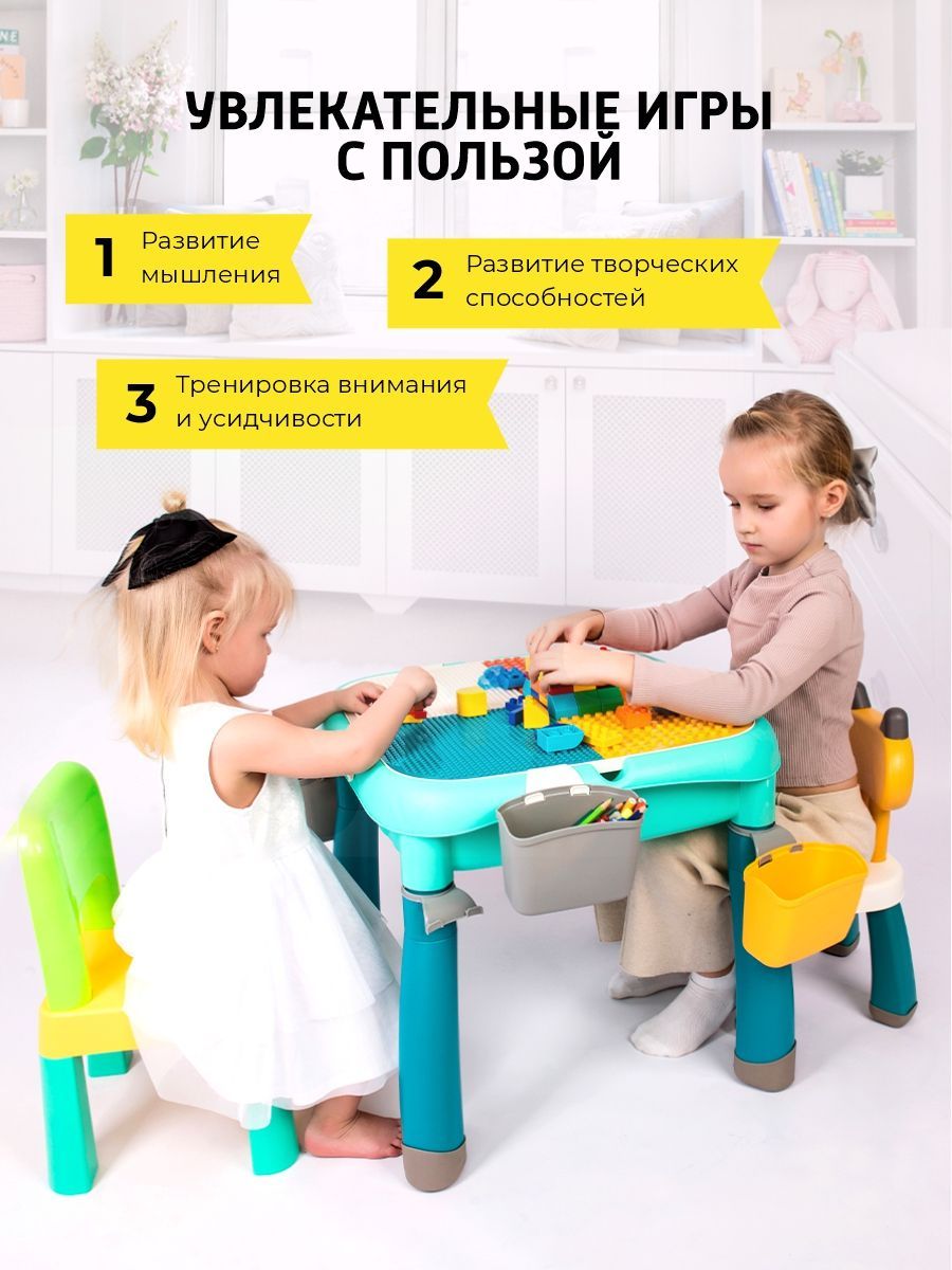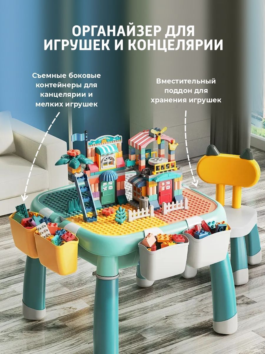 Развивающий детский стол (трансформер) для сборки конструкторов и стул, игровая поверхность столика подходит для крупных и мелких блоков в подарок на новый год