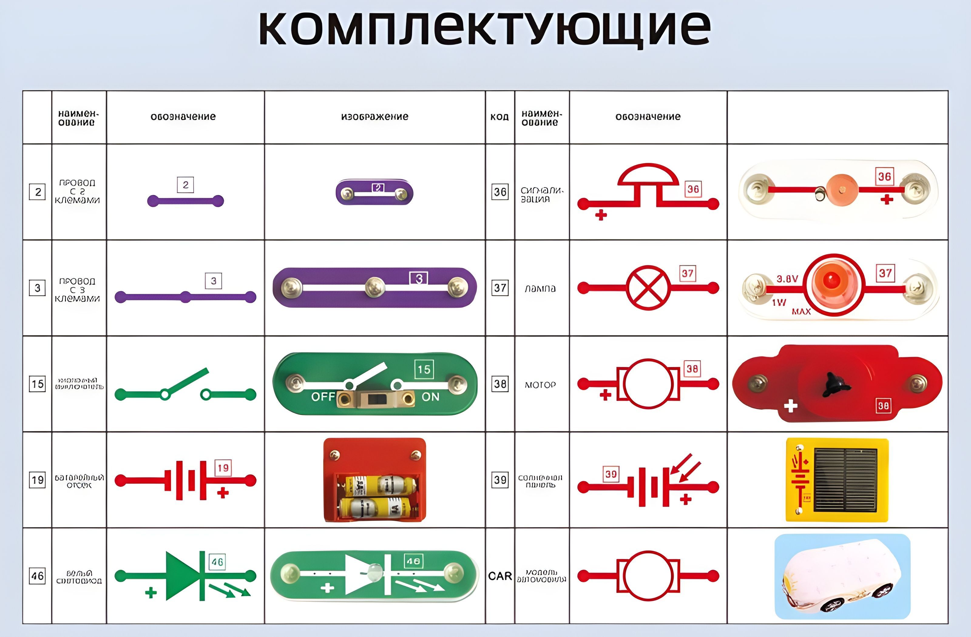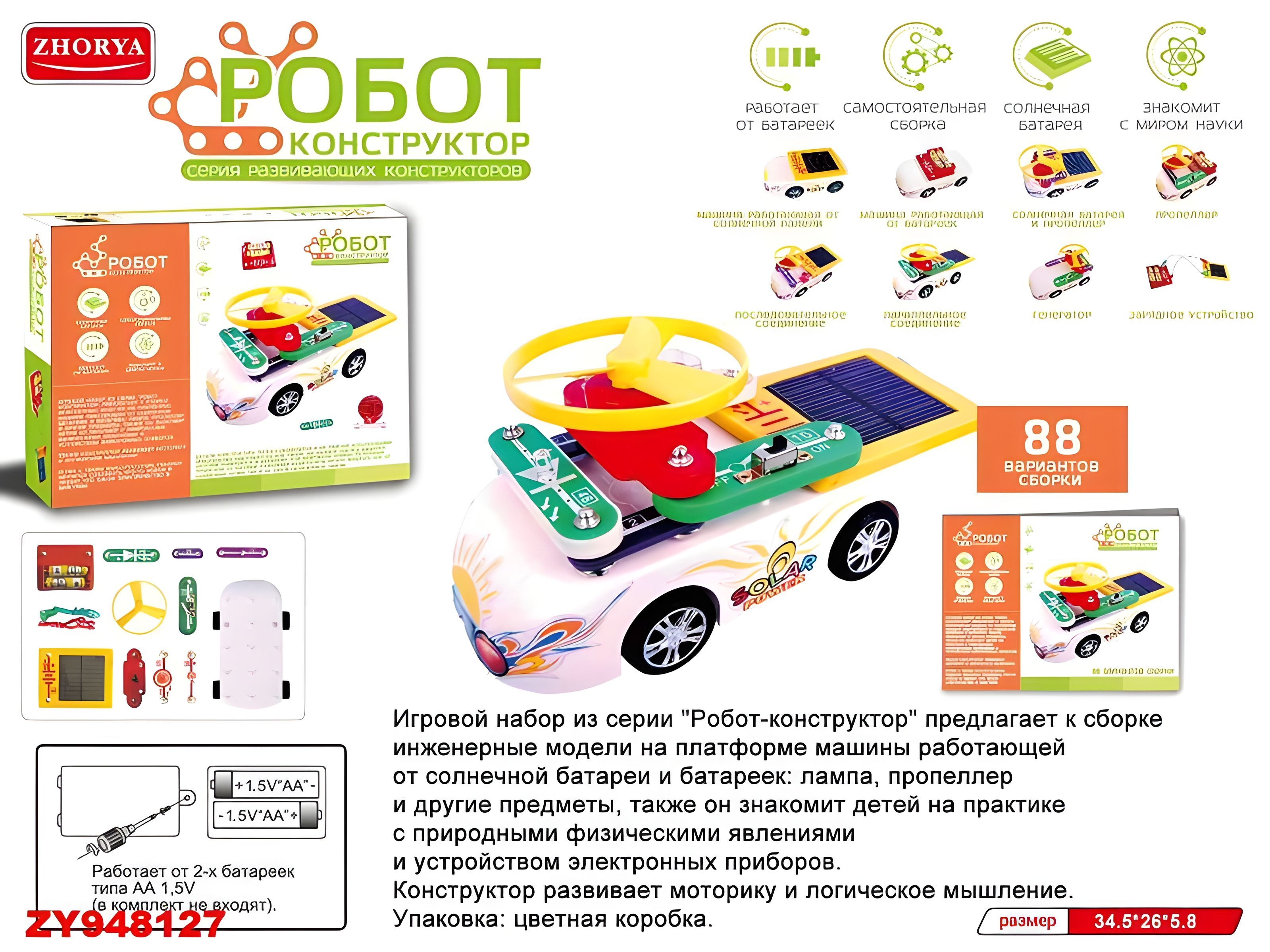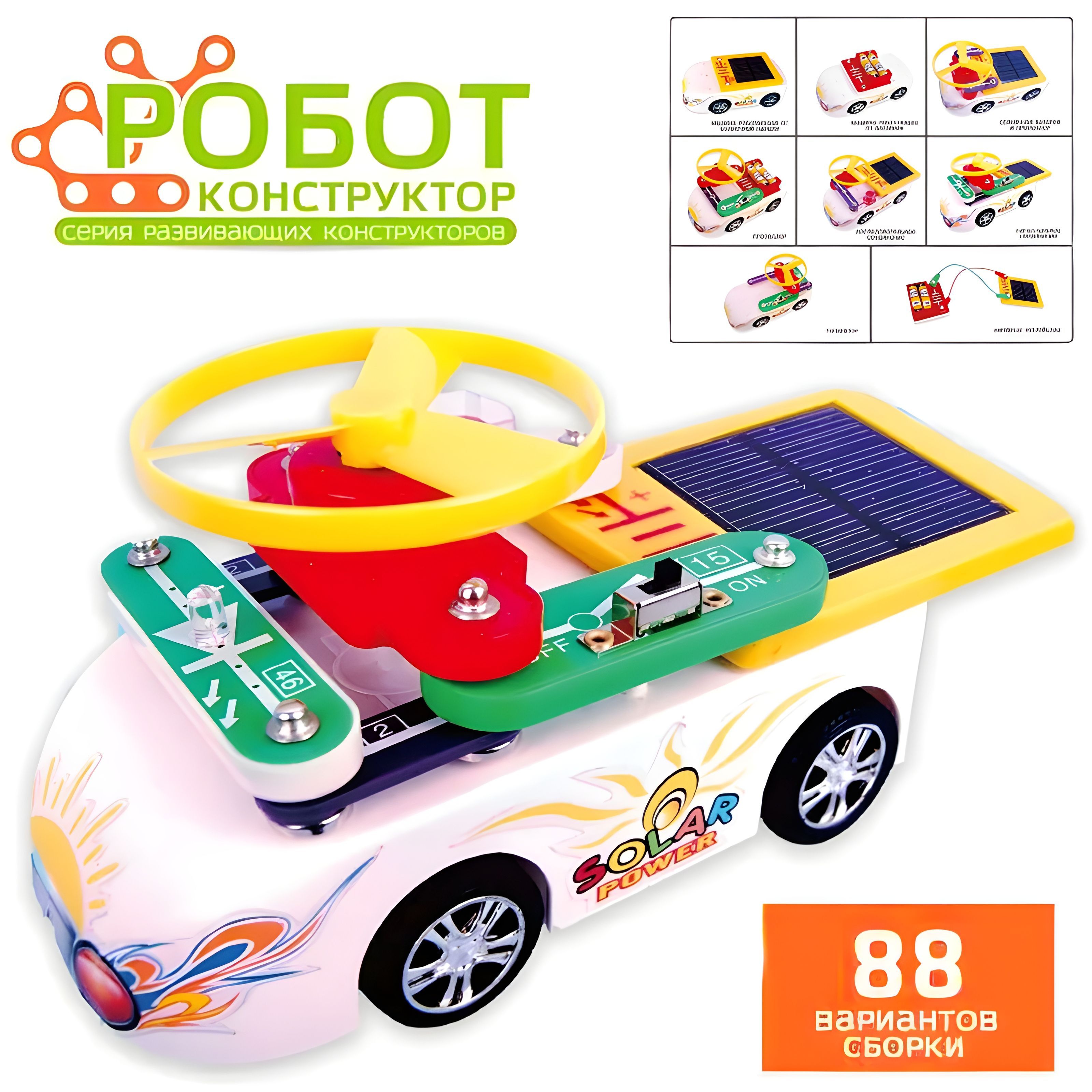 88 вариантов сборки: лампа, пропеллер, светодиод, солнечная панель,сигнализация, последовательное/параллельное соединение.