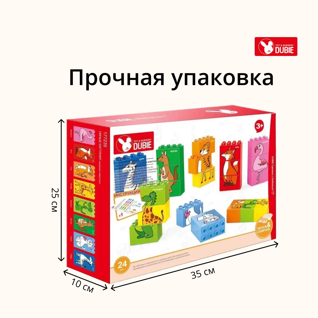 Развивающий конструктор DUBIE «Умные картинки. Забавные животные» с крупными деталями для малышей, совместим с LEGO DUPLO, 24 элемента