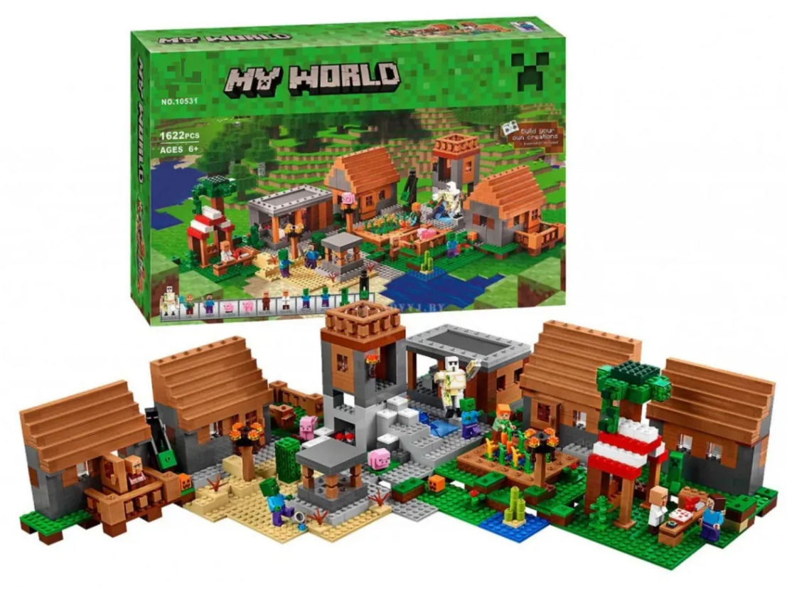 Развивающий конструктор майнкрафт MY WORLD "Большая деревня" Minecraft Детям, подросткам / World of Minecraft / Подарок ребенку / Минифигурки в комплекте