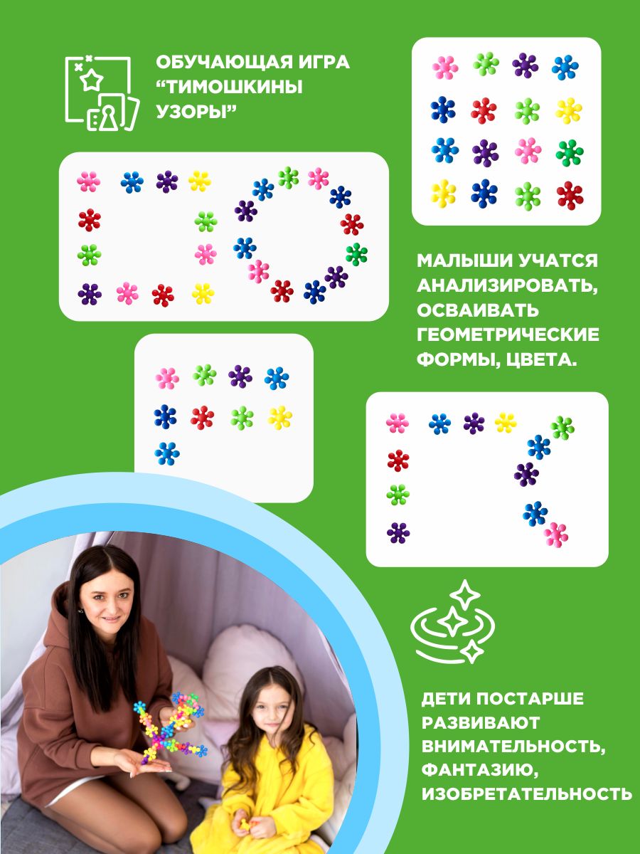 Описание: Необычная форма деталей конструктора в виде молекул цветочков, яркие цвета и простота креплений привлекут любого малыша. Конструктор имеет крупные прочные детали, ребенок не сможет их проглотить. К тому же они легко скрепляются и разъединяются между собой, поэтому с данным конструктором малыш может играть самостоятельно.Однако следует помнить, что любая игра должна начинаться с взрослыми. Покажите ребенку, что можно делать с конструктором, дайте первоначальные задания. Из деталей конструктора удобно строить цепочки. Для начала можно строить цепочки одного цвета, затем чередовать их. Со временем, юный фантазер легко сможет собирать оригинальные интересные фигуры, башни, животных и др. Конструктор «Молекулы» поможет развить воображение, образное мышление, фантазию, творческие и познавательные способности. Конструируя, ребенок развивает мелкую моторику, наблюдательность и логику.