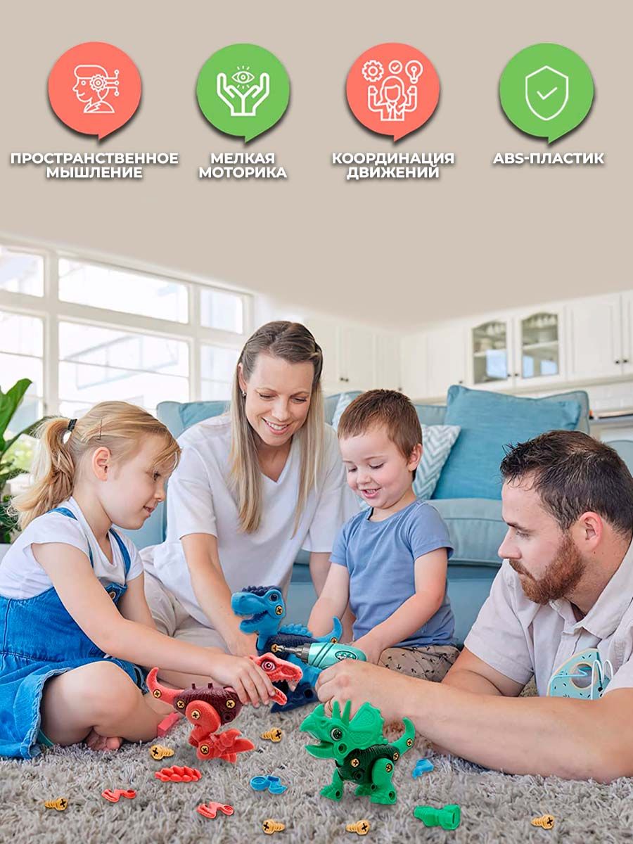 Описание: Развивающий конструктор с отверткой WiMi, игрушка динозавр с бластером, сборная модель динозавра с пушкой, игровой набор для мелкой моторики рук, динамический конструкторРазвивающий конструктор Динозавр с отверткой – мечта любого мальчика и девочки. Сборочная модель игрушки динозавра удивит детей свой детализацией и оригинальным дизайном: у динозавров подвижные лапки, хвост и шея, открывается челюсть.3d конструктор с отверткой позволит малышам самостоятельно собрать таинственных персонажей из мира юрского периода. Интерактивная игрушка для малышей представляет собой игровой набор, в котором есть все необходимые детали и инструменты для создания динозавров – отвертка. В наборе 1 модель динозавра для сборки с футуристическим оружием в комплекте. Мощный спаренный красочный автомат бластер стреляет на 360 градусов дротиками на присосках.3д конструктор даст возможность мальчикам и девочкам узнать больше о динозаврах и их мире. Поможет им изучить различные виды динозавров и их особенности. Увлекательная игра с конструктором – это отличный способ для развития творческих способностей и фантазии. станет отличным подарком для малыша, который любит творить и создавать свои уникальные модели. Игрушка конструктор с динозаврами не только развивает моторику и логическое мышление. В каталоге WiMi вы найдете широкий ассортимент игровых наборов с крупными деталями и мини блоками. Мы будем рады, если вы оставите отзыв на странице товара.Вам также понравится!В каталоге нашего бренда WiMi Вы найдете ещё больше интересных товаров!315205914312803264558890791555033124628967569799281606674156953506808636561043232506892231557971611615051259