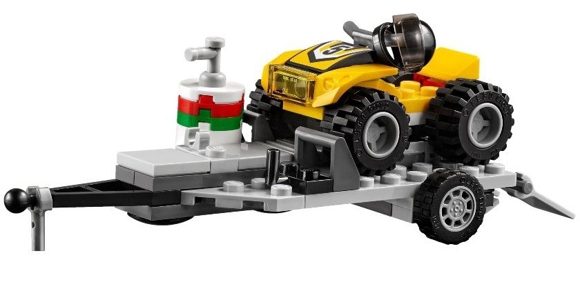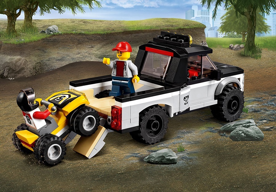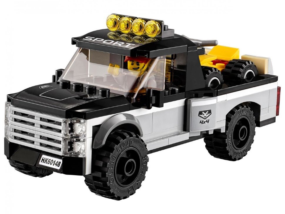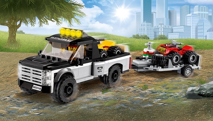 Описание: Двое гонщиков собрались погонять за городом на квадроциклах. Они загружают в свой пикап с прицепом квадроциклы и отправляются к месту старта. С собой у них все необходимое: инструменты, канистры с бензином, запасное колесо. Они готовы пуститься в захватывающую гонку по бездорожью.