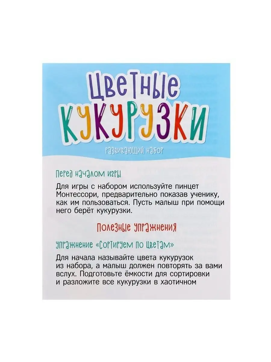 Развивающий набор "Цветные кукурузки", по Монтессори