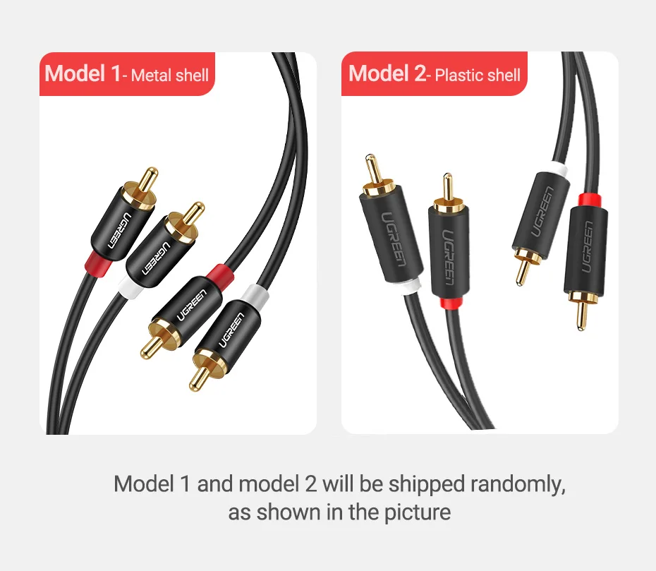 Если вы покупаете набор с аудиокабелями 2RCA , Модель 1 и модель 2 будут отправлены случайным образом , Как показано на картинке (модель 1 и модель 2 отличаются только внешним видом, что не влияет на использование)