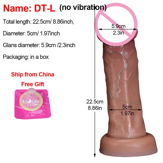 DT-L без вибрации:Длина 22,4 см (8,86 дюйма), диаметр 5 см (1,97 дюйма), диаметр головки 5,9 см (2,3 дюйма)