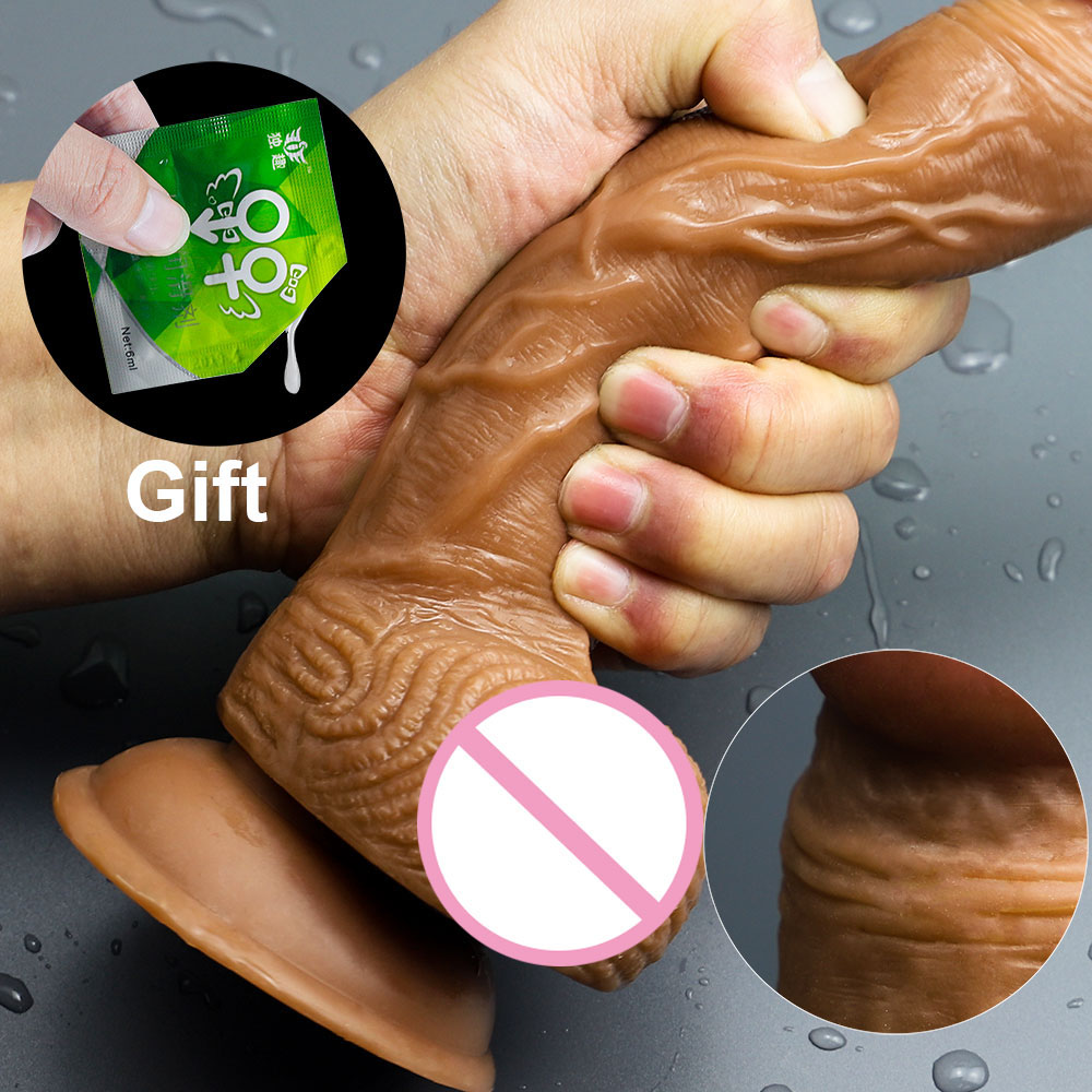 Реалистичный мягкий огромный фаллоимитатор на присоске