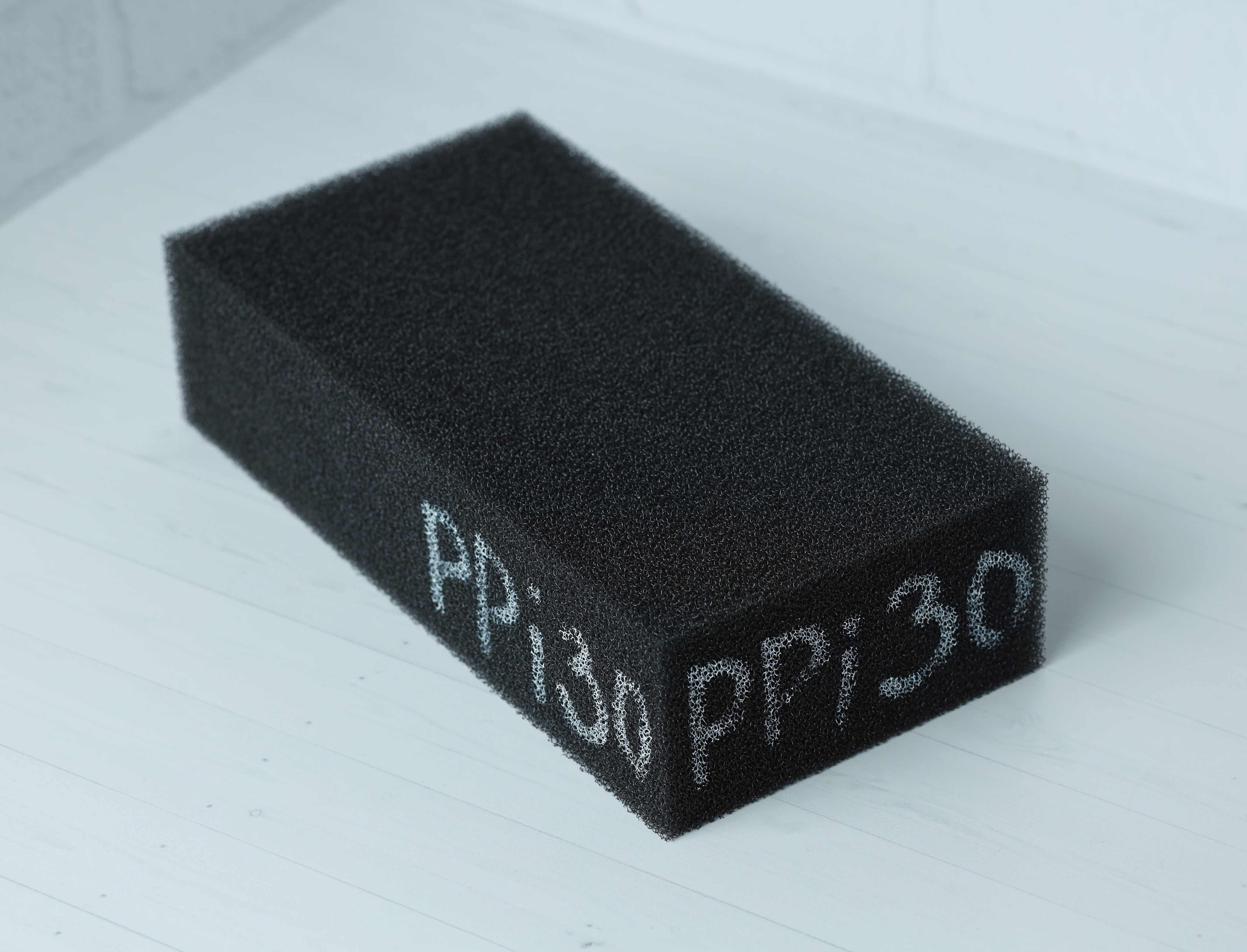 Ретикулированный пенополиуретан - это полиуретановая пена с полностью открытой ячеистой структурой, которая получается в результате тепловой ретикуляции. Используется для различных фильтров: воздушных, водных, пылевых, пенокерамических. Количество пор на дюйм поверхности: 27-33 шт. Класс очистки: G2/G3.