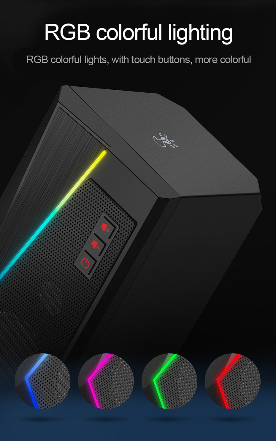 С легким касанием режим подсветки RGB-панели освещения может быть переключен с 6 режимами. С помощью Простого Щелчка можно точно регулировать громкость.