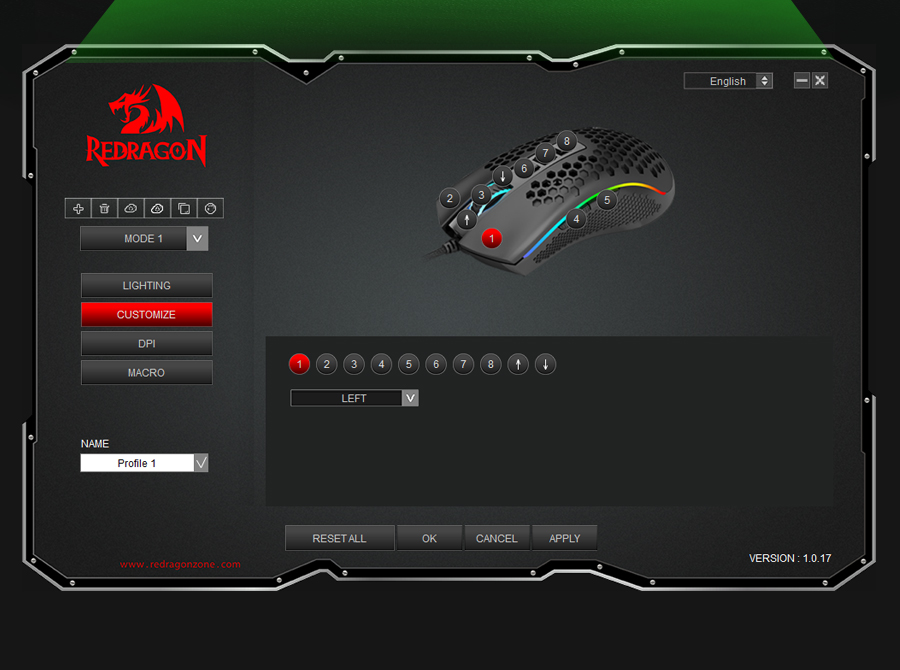 Sets Your DPI/RGB - 100 to 12400 DPI and 16.8 Million colors are all customizable with software support, engineer your liked way to win.