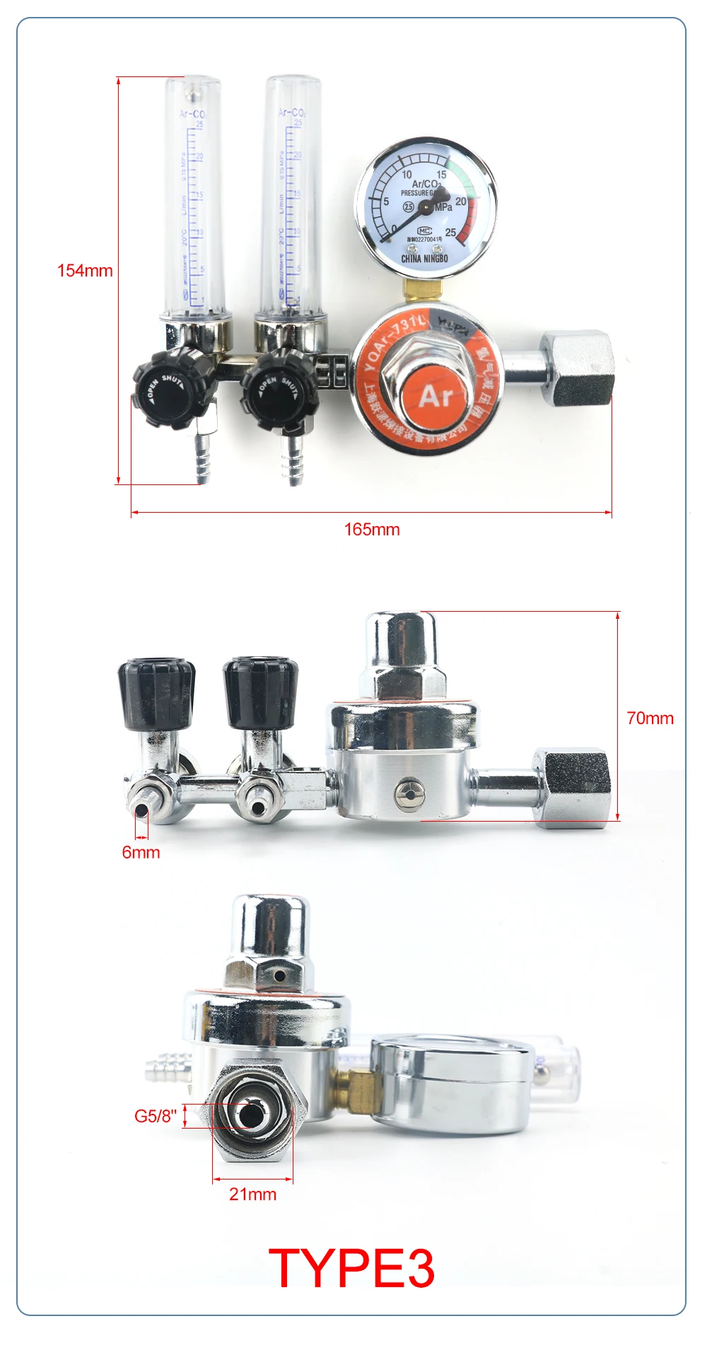 Редуктор давления газа 0-25 МПа CO2 Mig Tig