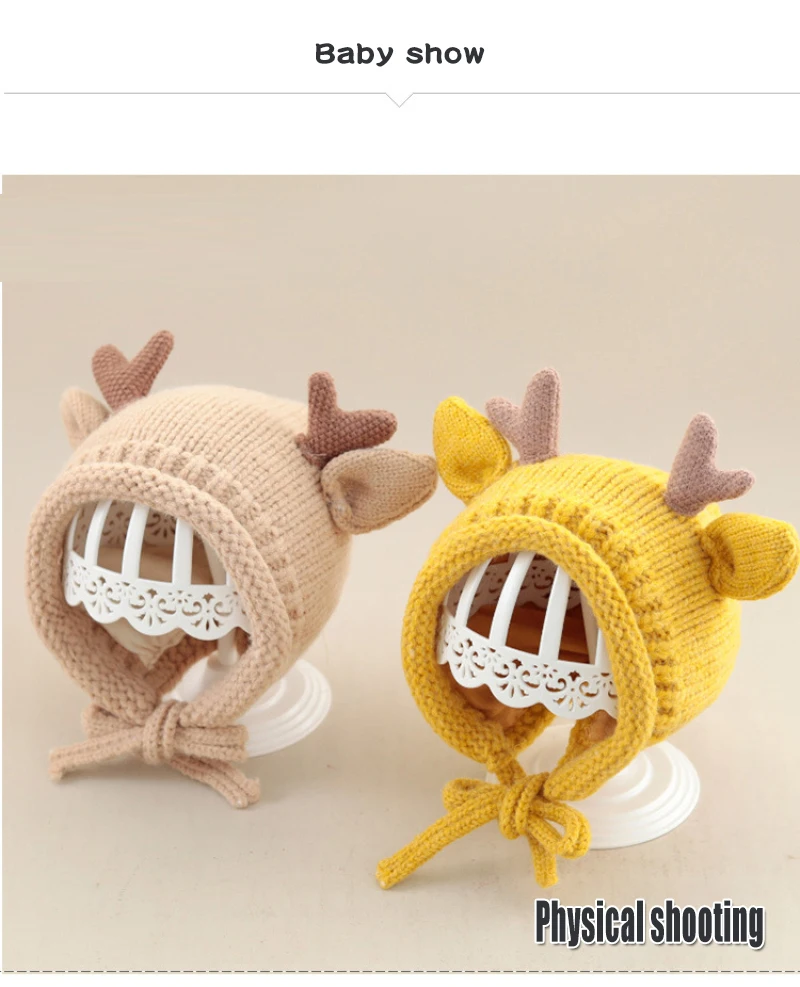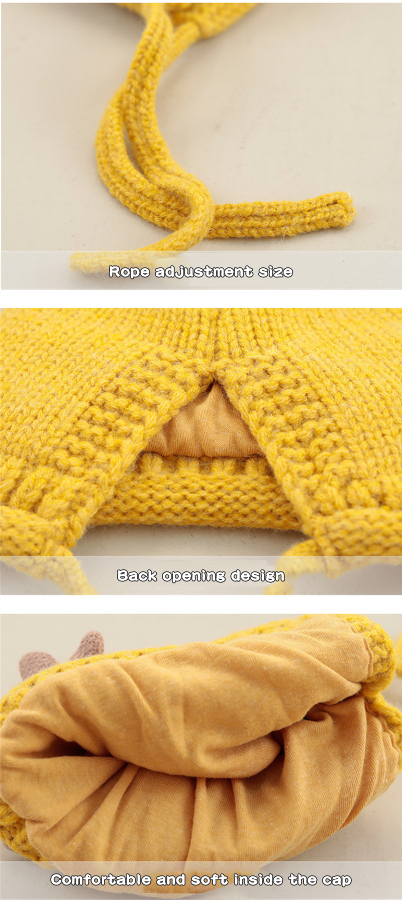 Регулируемая завязывающаяся веревка для ушей, теплая милая детская шапка, шерстяная шапка для защиты ушей, теплая ветрозащитная шапка
