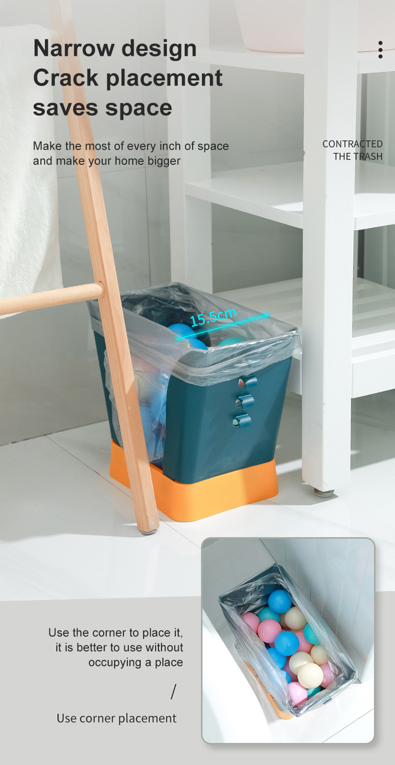 Foldable Kitchen Trash Can Recycle Garbage Basket Adjustable Kitchen Trash Garbage Bags Holder Narrow Expand Waste Bin Bathroom