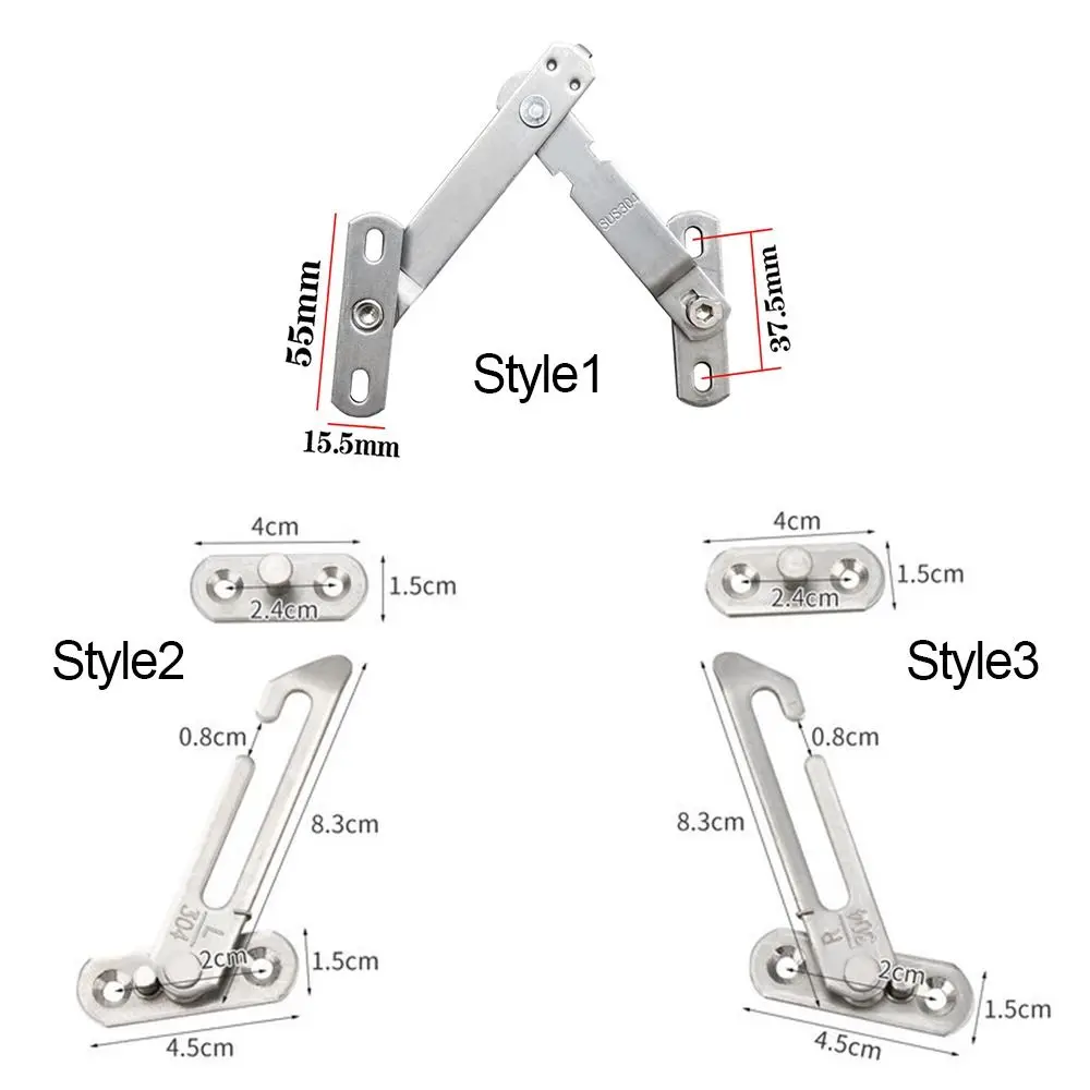 Имя: Защелки оконного крючка Материал: нержавеющая сталь 201 Цвет: серебристый Длина растяжки: (приблизительно) 360 мм Размер: (приблизительно) 225 мм Характеристики: Совершенно новый и качественный. Это продукт для безопасности детей, который не позволяет детям открывать окна и вылезать из них без разрешения. В то же время он может контролировать размер оконного проема, чтобы предотвратить проникновение сильного ветра, и в то же время может поддерживать циркуляцию воздуха, подходящую для домов, отелей, школ, детские сады и т. д. Пакет, включающий: 1 x защелки оконного крючка