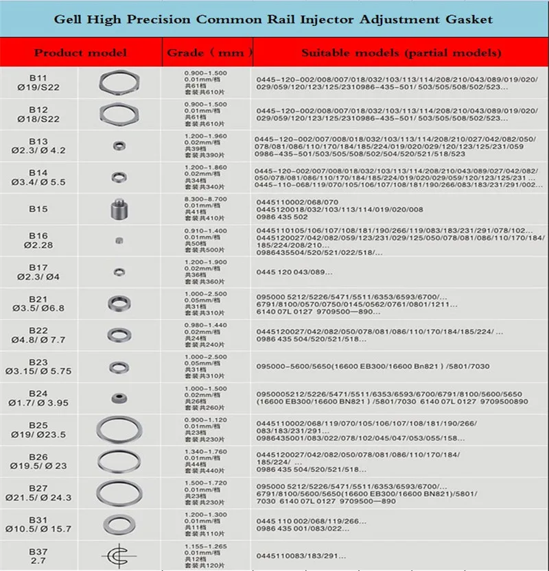 Регулируемые прокладки B11, B12, B13, B14, B16, B22, B25, B26, B31, b42, комплект дизельных прокладок, Регулировочная Шайба (количество 50 шт./лот)