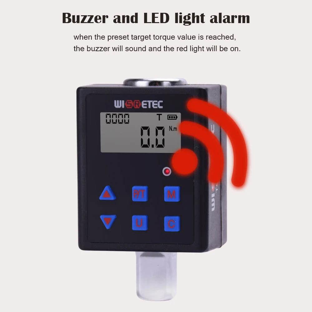 Предварительно установленные значения со звуковым и светильник сигналом, заданные значения в соответствии с измеряемым крутящим моментом, при включении зуммера и достижении заданного целевого значения крутящего момента, звуковой сигнал будет звучать долго, и красный светильник будет включен.