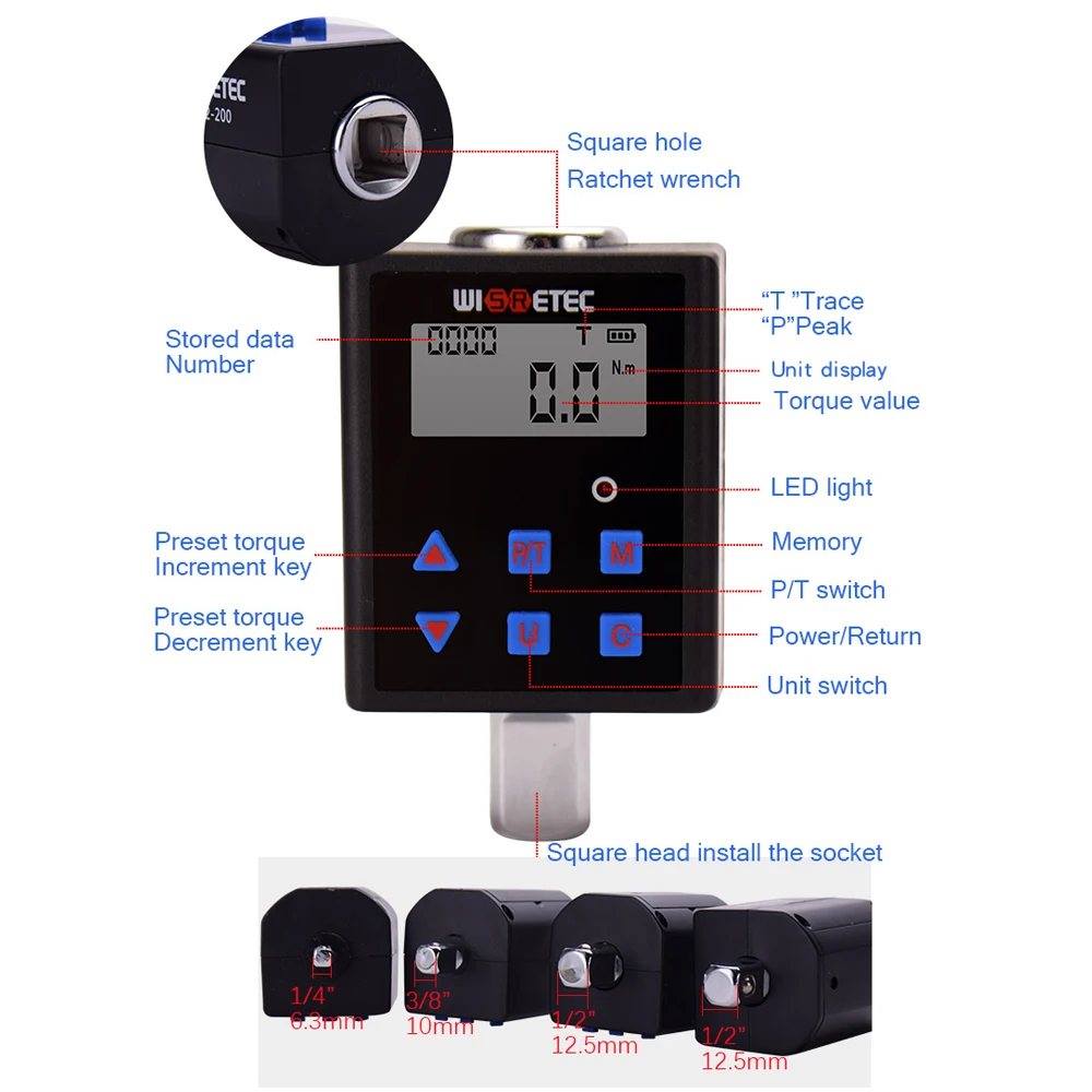 Цифровой измеритель вращающего момента для различных видов затягивания и демонтажа управления, с простой в эксплуатации, простой и легкий, мульти-блок преобразования, звуковой сигнал, регулируемый по часовой стрелке и обратном направлении, и т. Д. Используется в сочетании с общим храповым механизмом, Ручка крутящего момента может использоваться в качестве цифровой ручки крутящего момента с теми же функциями, что и цифровой храповик крутящего момента. (Ручка приобретается отдельно)