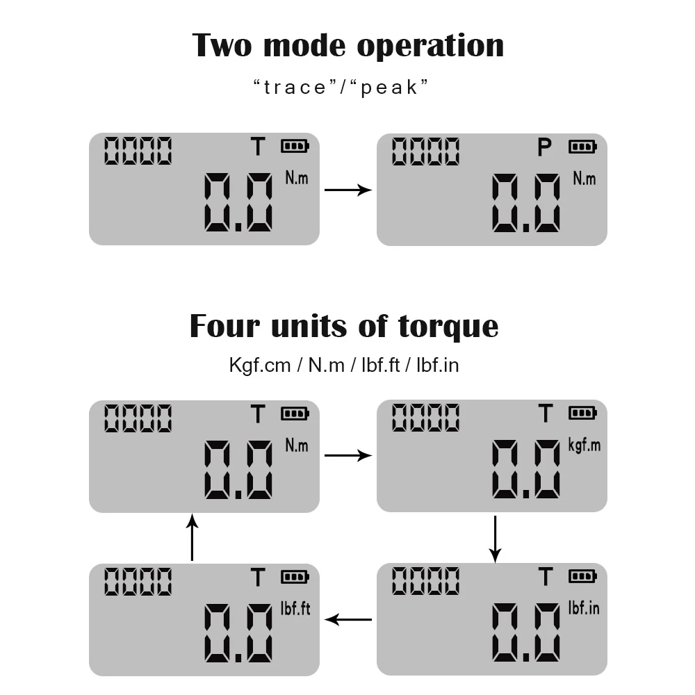 Четыре единицы доступны, вы можете настроить между Kgf.cm, N.m, Ibf.ft и Ibf.in в зависимости от ваших потребностей.