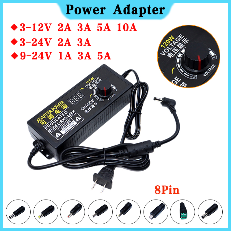 Регулируемый адаптер питания AC 100V-240V DC 3-12V 3-24V 9V-24V 1A 2A 3A 5A 10A источник питания 8 штекер гнездовой разъем ЕС/США для светодиодной ленты