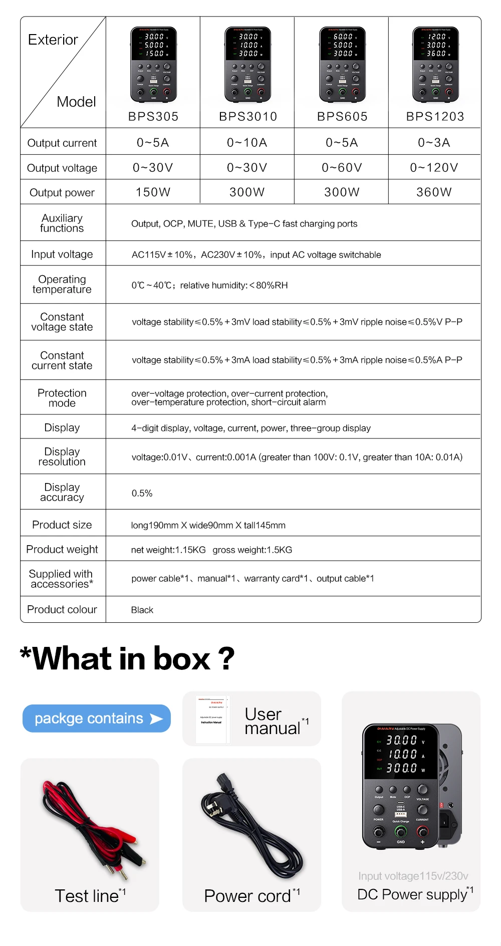 3.BPS605 Программируемый источник питания постоянного тока с дисплеем питания 60V 5A