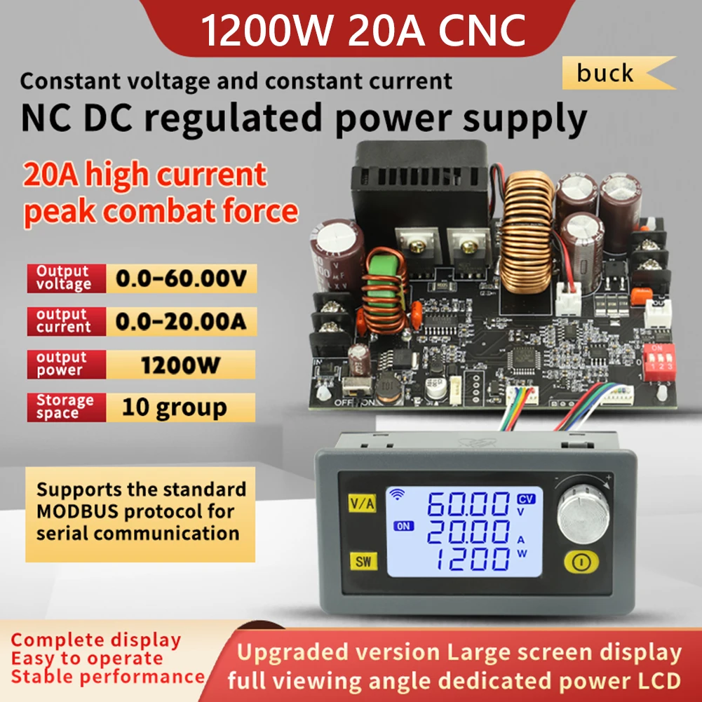 Регулятор напряжения постоянного тока 1200 Вт 20 А, Регулируемый стабилизатор с ЧПУ, ЖК-дисплей, постоянный ток, многоуровневый защитный понижающий модуль