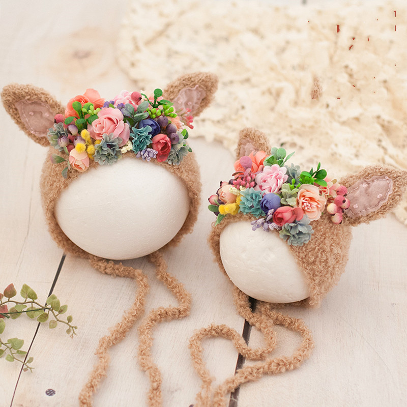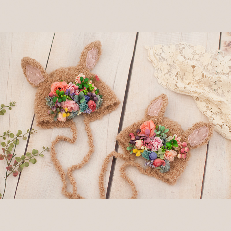 Реквизит для фотосъемки новорожденных, чистые тканые цветы, тема кластера, Шапки для малышей с кроличьими ушками, Детская студийная съемка