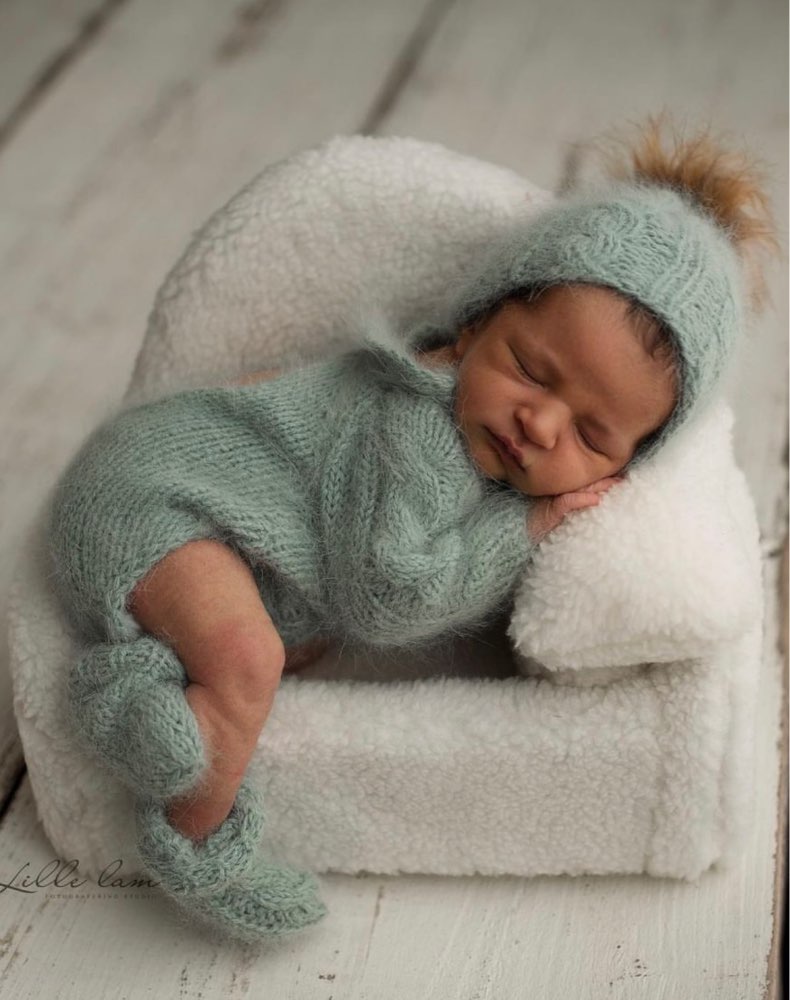 Реквизит для фотосъемки новорожденных, шапка из эластичной шерсти и мохера, брюки и носки.
