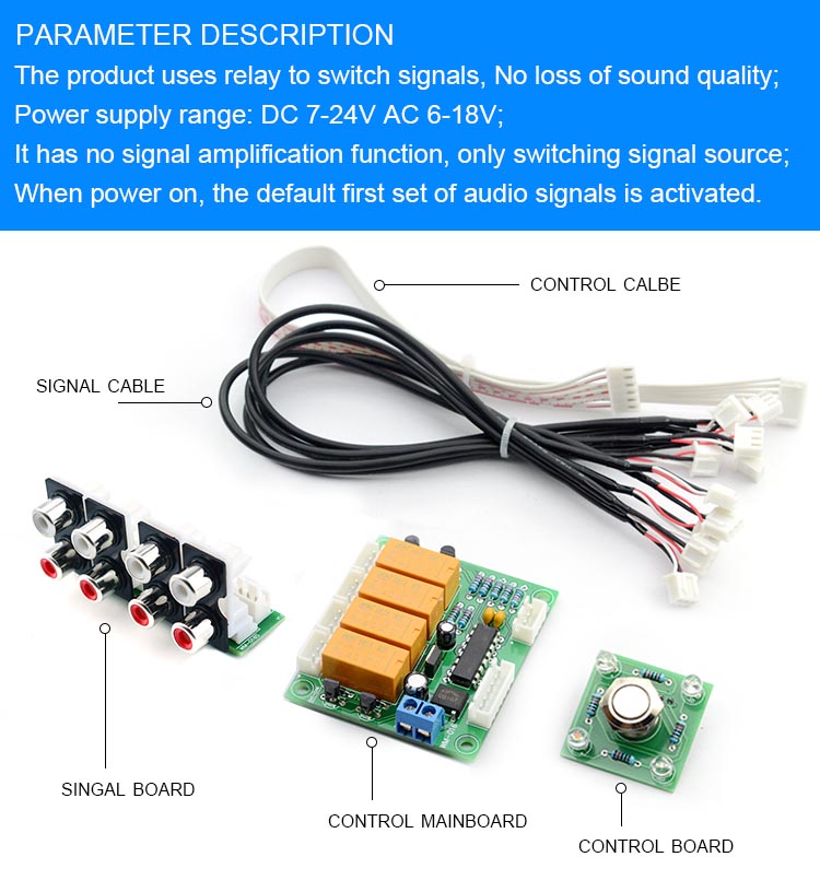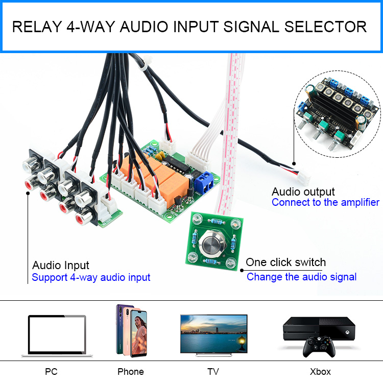 Реле CIRMECH 4-полосный аудиовходной сигнал Селекторное переключение RCA, плата выбора аудиовхода кнопочного переключателя для усилителей