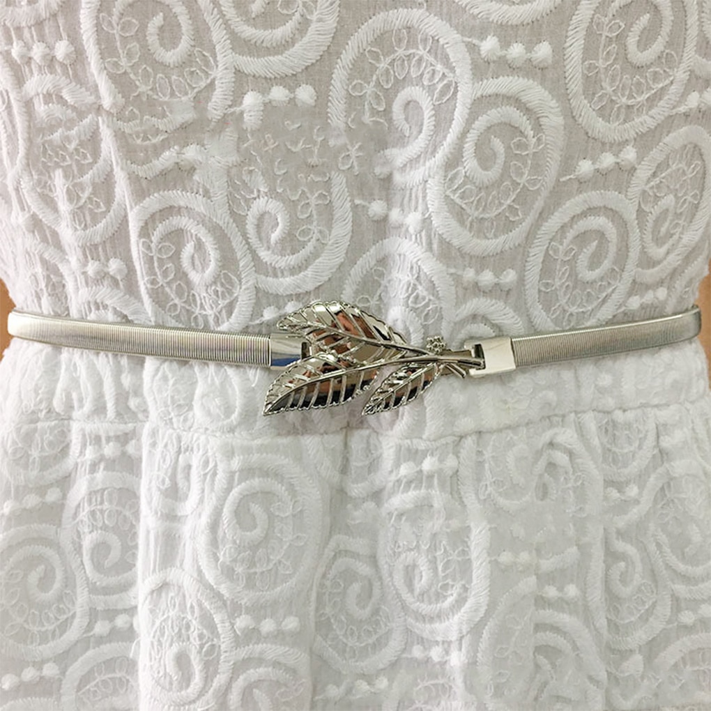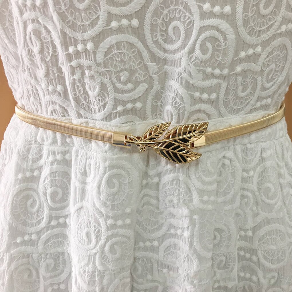 Ремень Эластичный Женский, универсальный узкий растягивающийся пояс с металлическими листьями, аксессуар на День святого Валентина