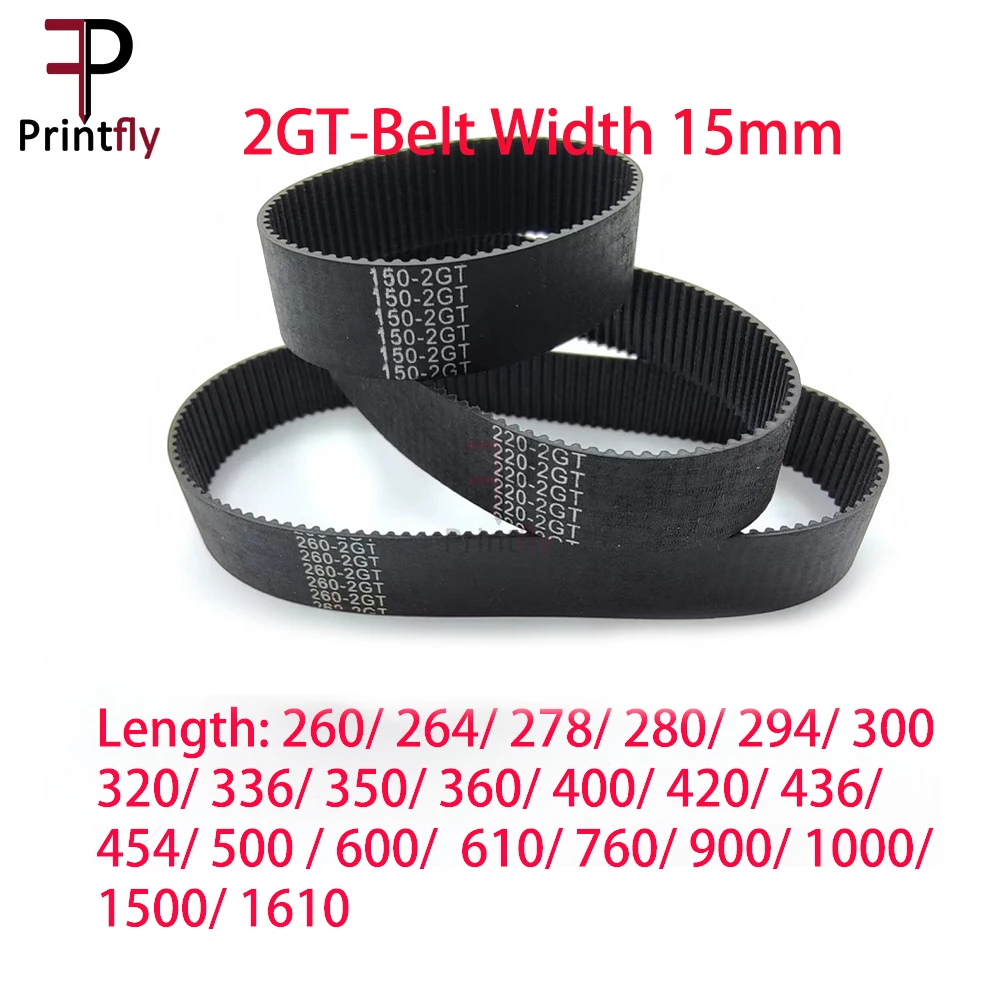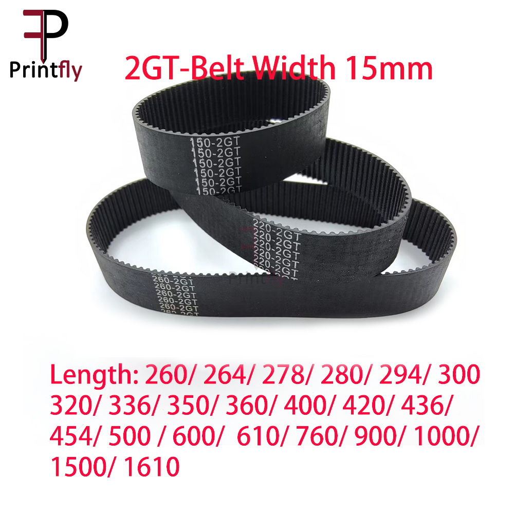 Printfly 2MGT 2M 2GT Synchronous Timing belt Pitch length 260/264/278/280/294/300/320/336/350/360/400/420/436/454/500/600/610/760/900/1000/1500/1610mm Width 15mm Rubber closed