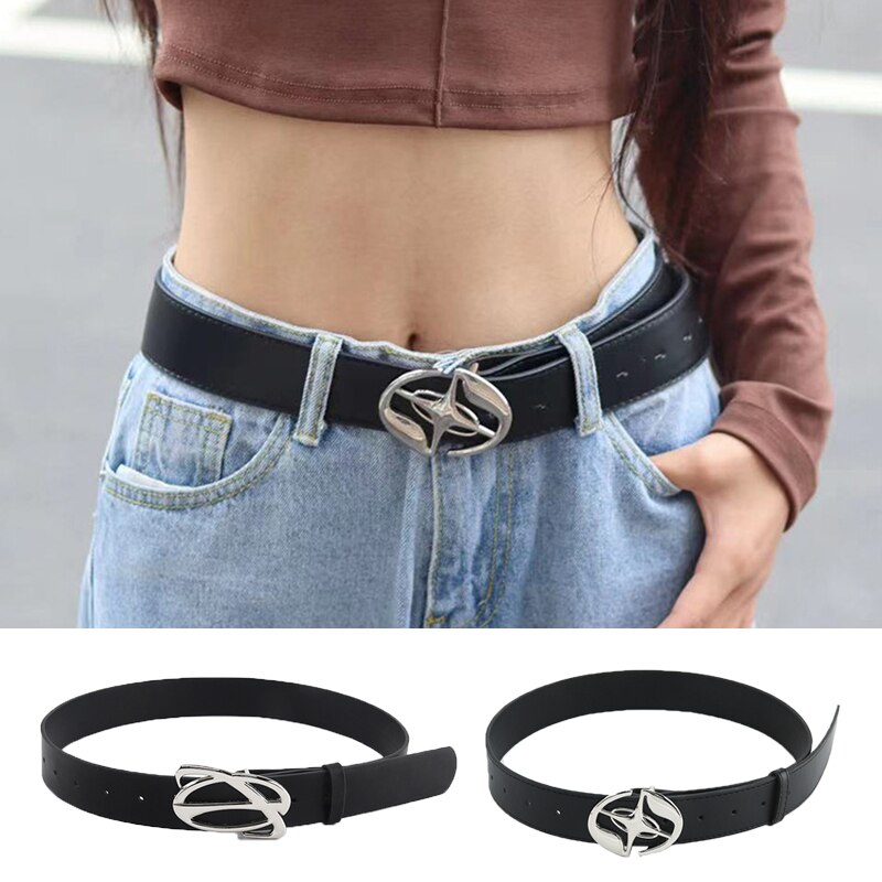 Геометрический ремень с пряжкой Повседневный стиль Талия Ремень Платье Брюки Пояс Металлическая Звездная Пряжка Кожаный Ремень PU Кожаный Пояс
