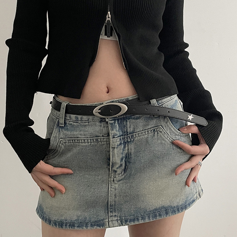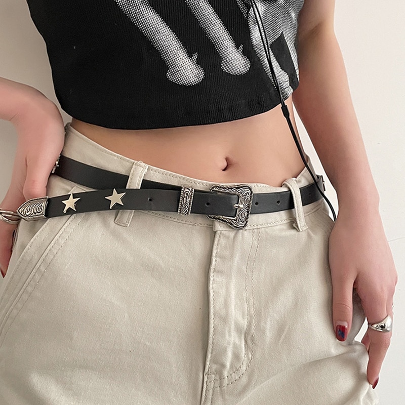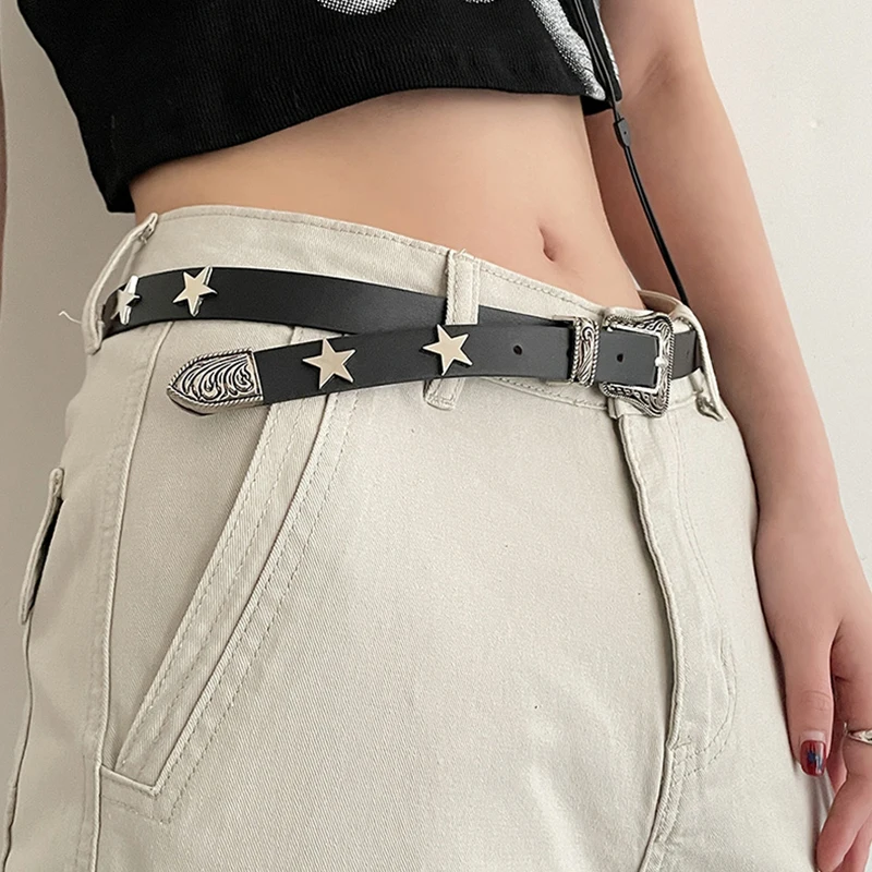 Ремень из искусственной кожи Y2K Женский, дизайнерский пояс со звездочками и металлической пряжкой, украшение для джинсов для студенток и девушек
