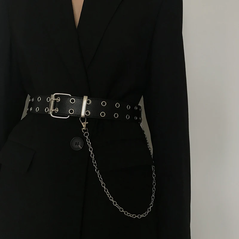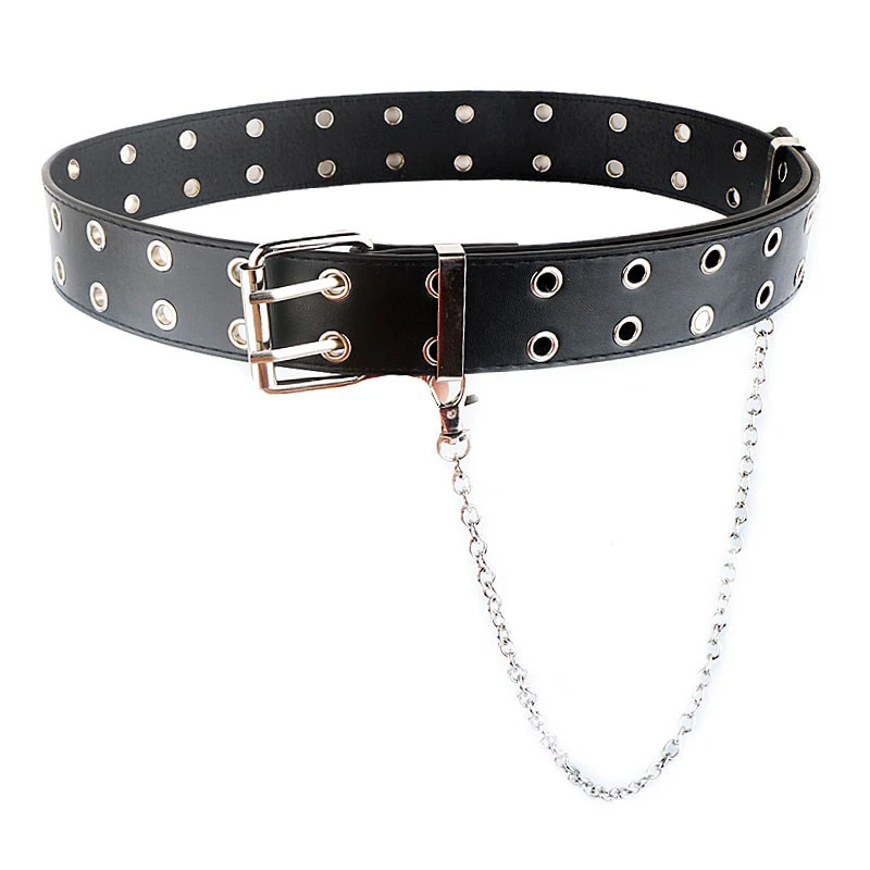 Ремень из искусственной кожи Женский, модный пояс в стиле панк для джинсов с классической пряжкой, люверсы свободного размера для брюк