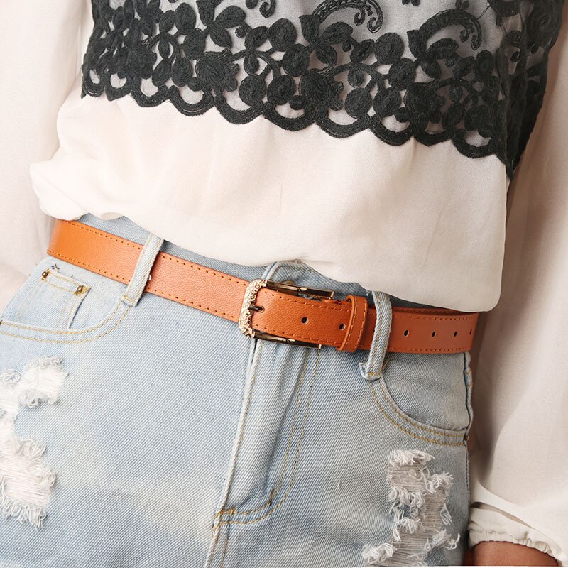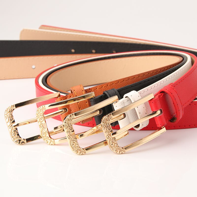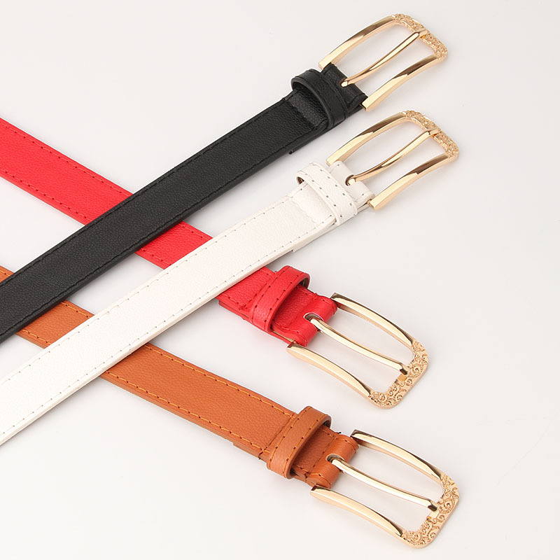 Ремень из искусственной кожи Женский, модный простой пояс с металлической пряжкой, черный, для костюма, джинсов, аксессуар для одежды