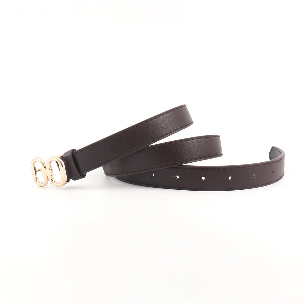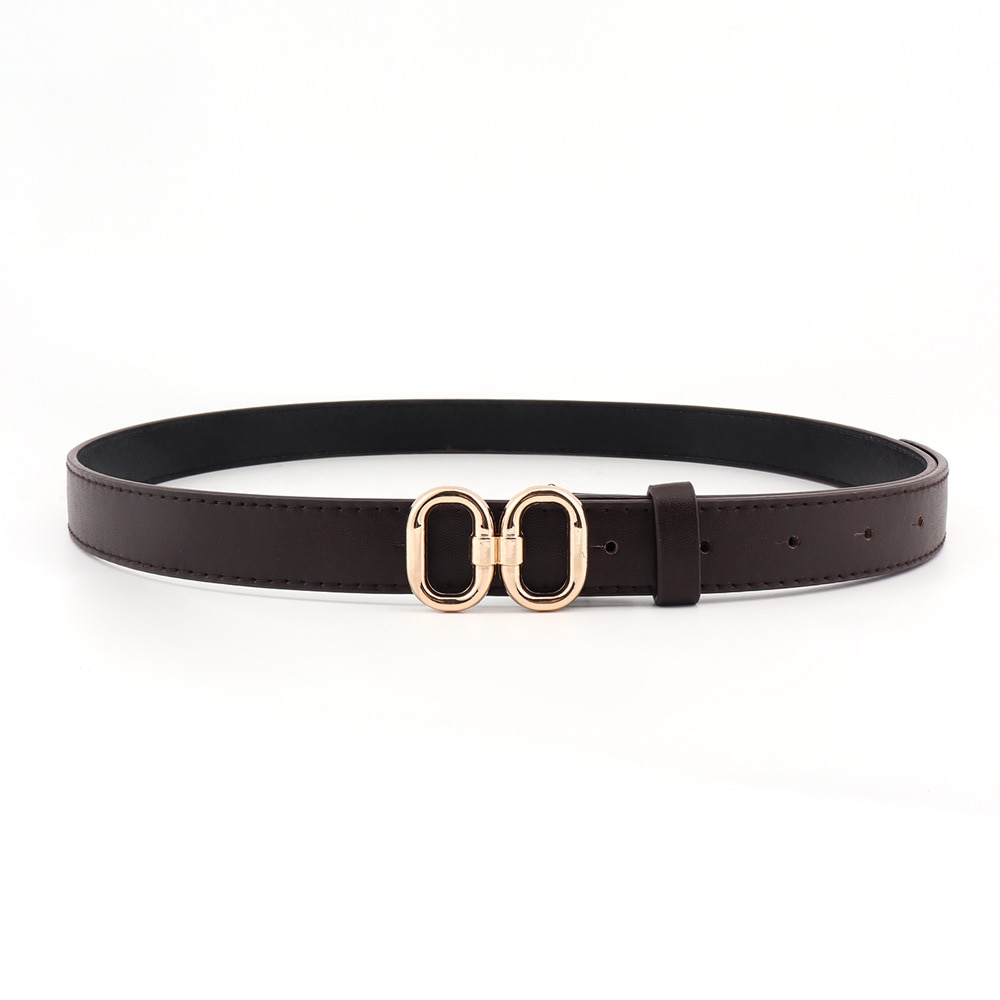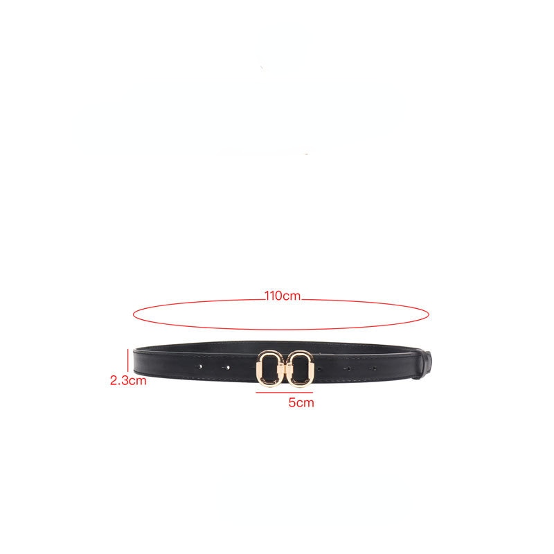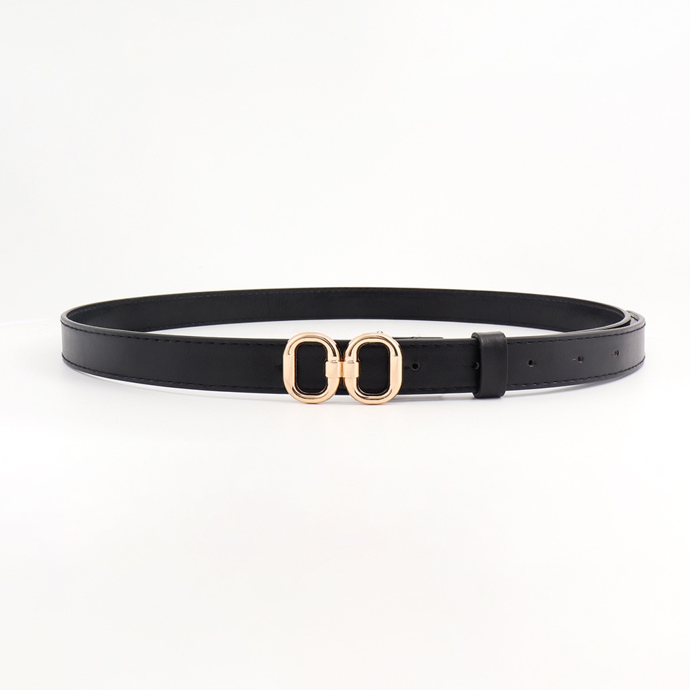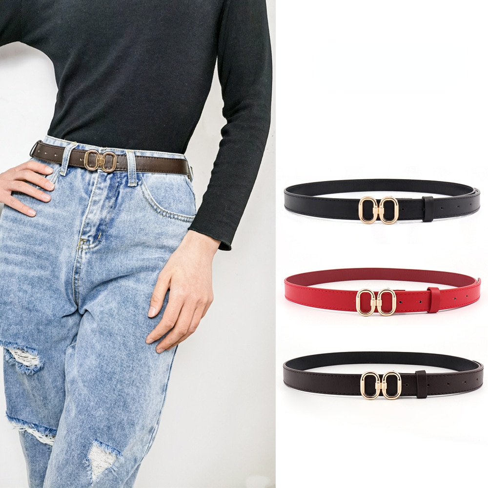 Ремень из искусственной кожи Женский, модный тонкий черный пояс с двойной круглой металлической пряжкой, подходит для платьев