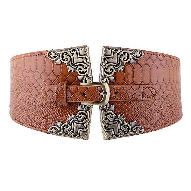 Ремень из искусственной кожи Женский, широкий эластичный модный винтажный пояс в стиле ретро, с металлической пряжкой, красный коричневый
