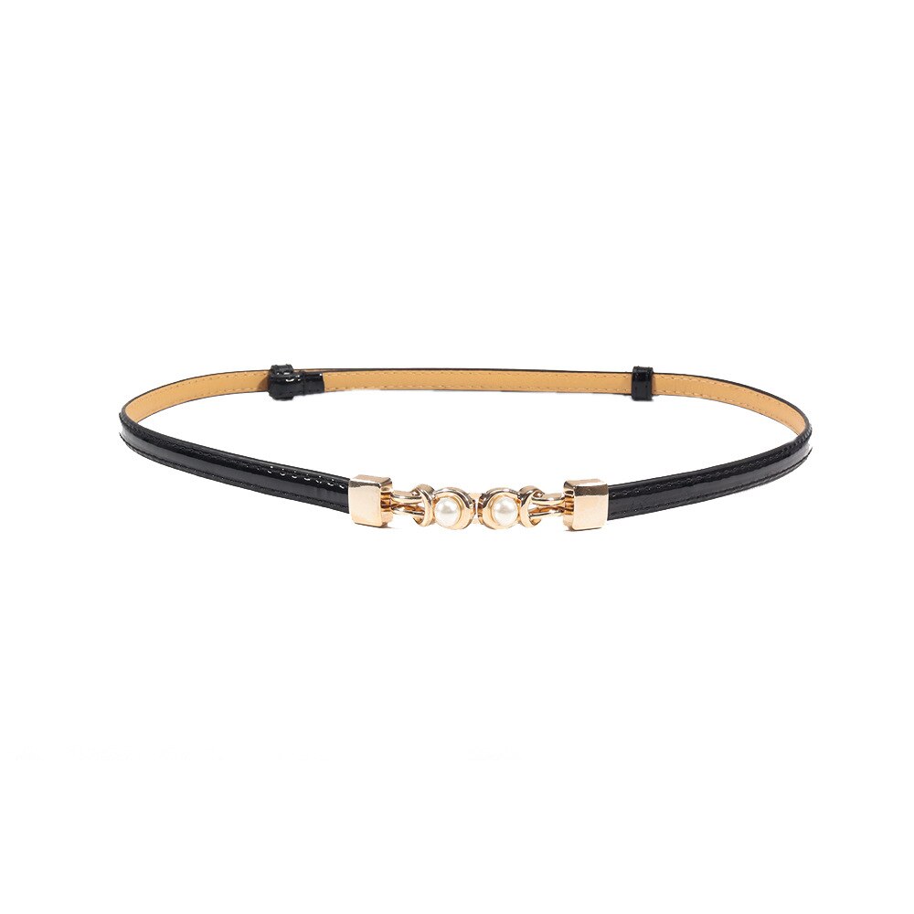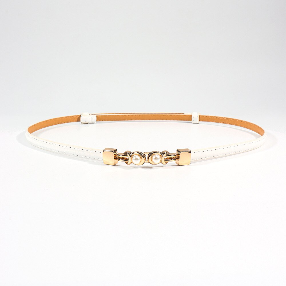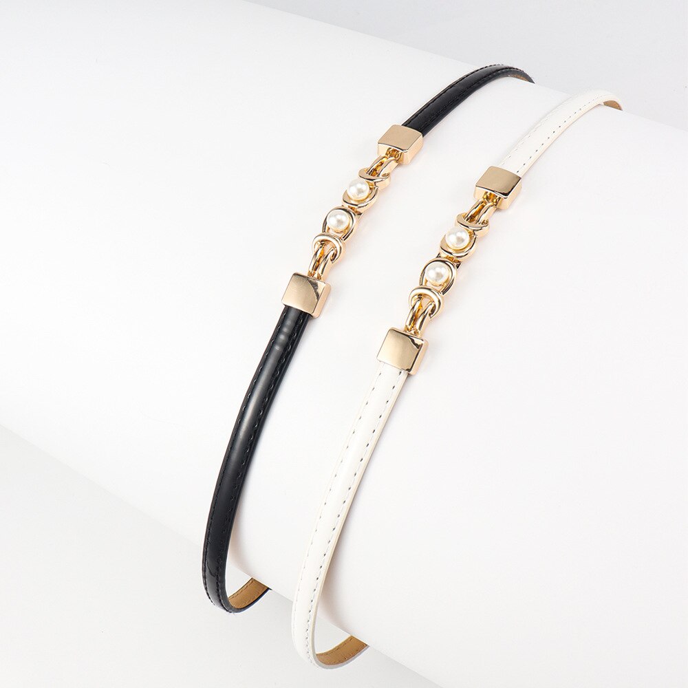 Ремень из искусственной кожи Женский, тонкий эластичный пояс с жемчужной пряжкой для платьев и юбки