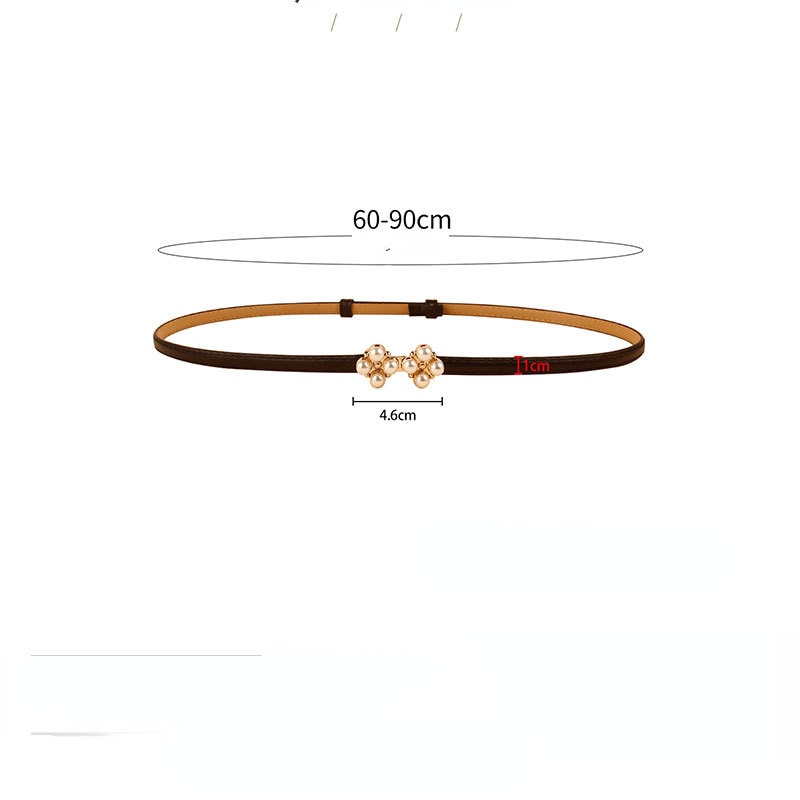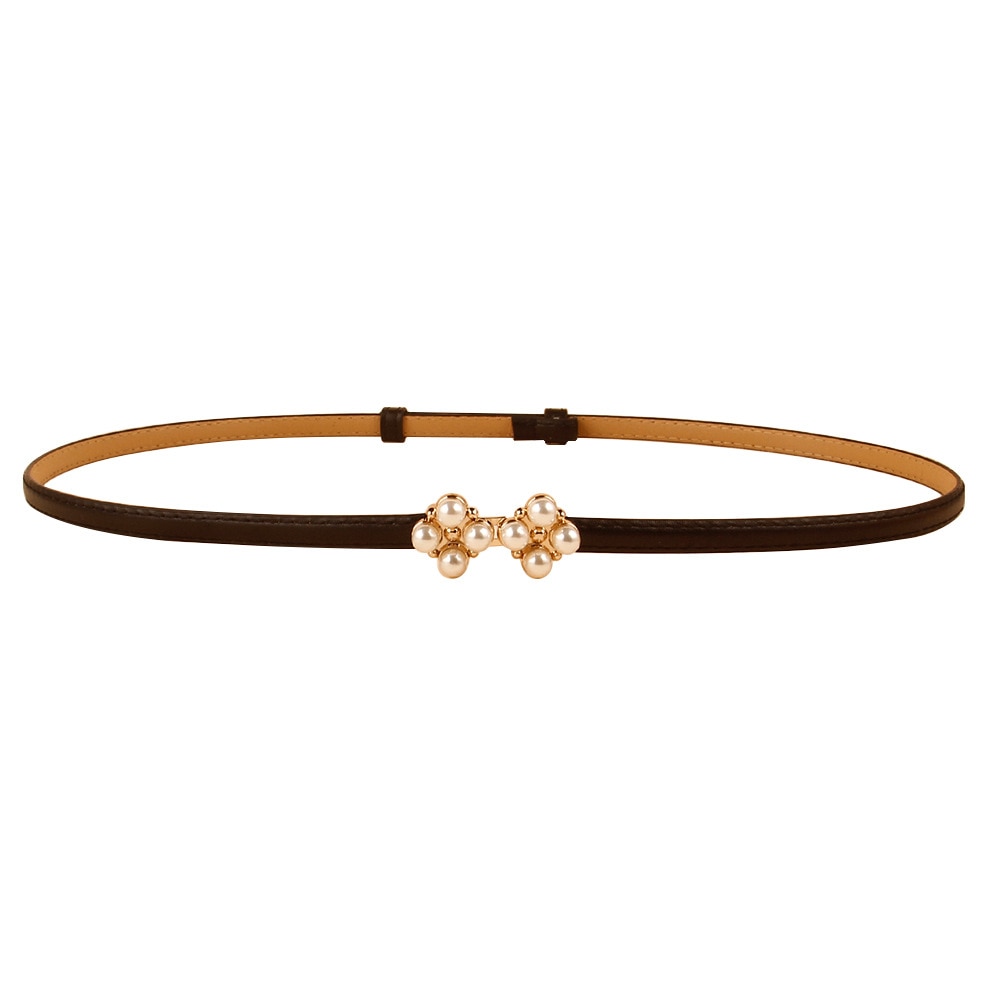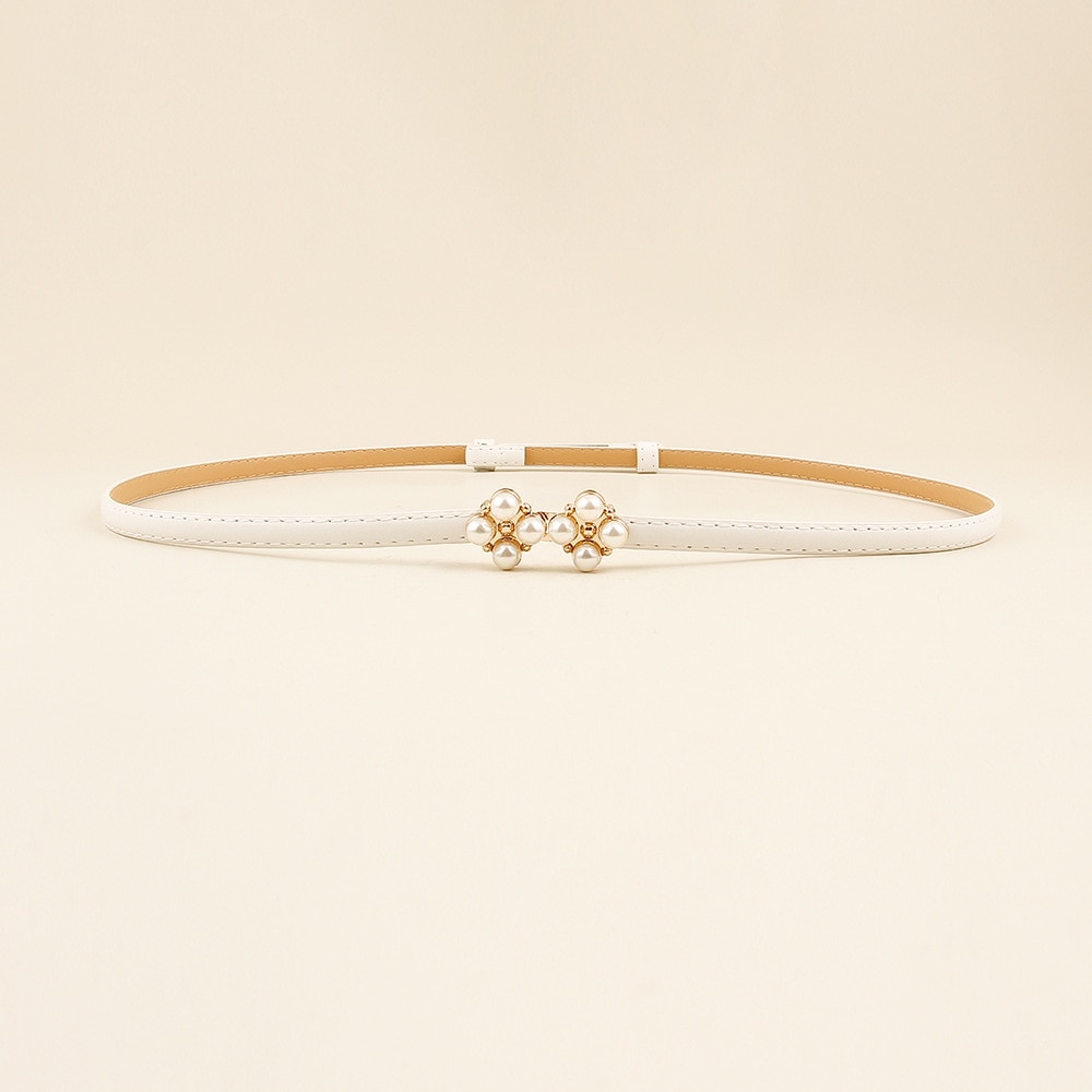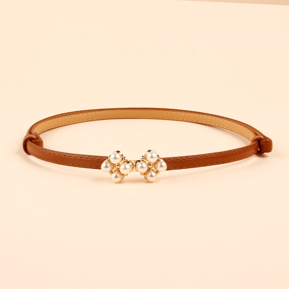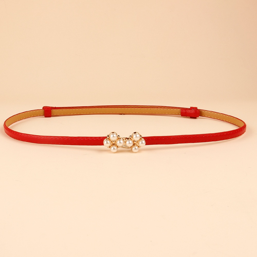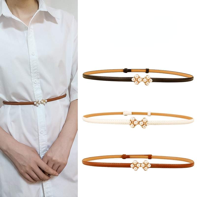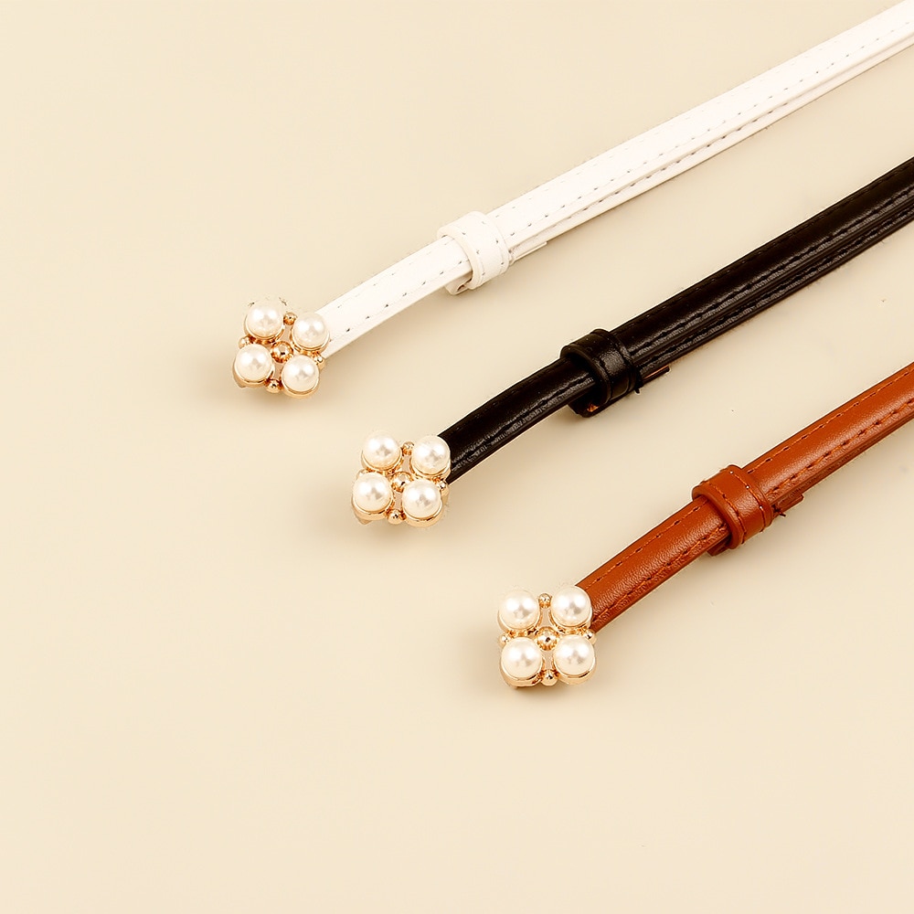 Ремень из искусственной кожи Женский, тонкий эластичный пояс с жемчужной пряжкой для платьев и юбки