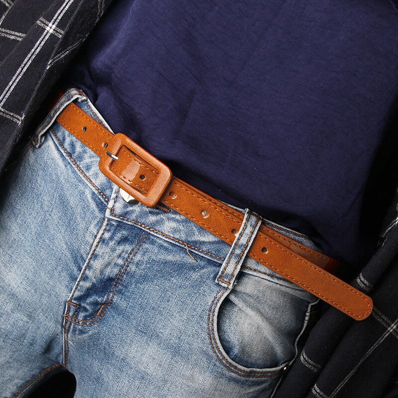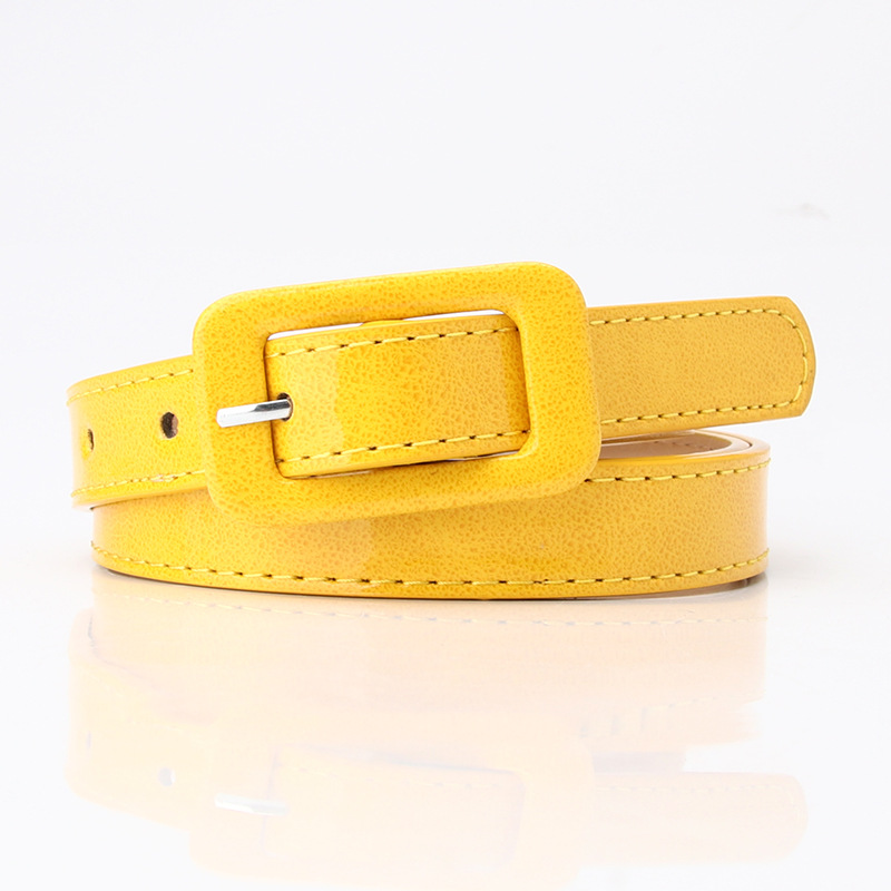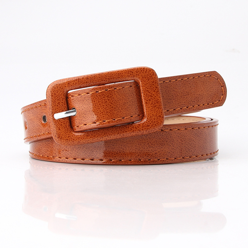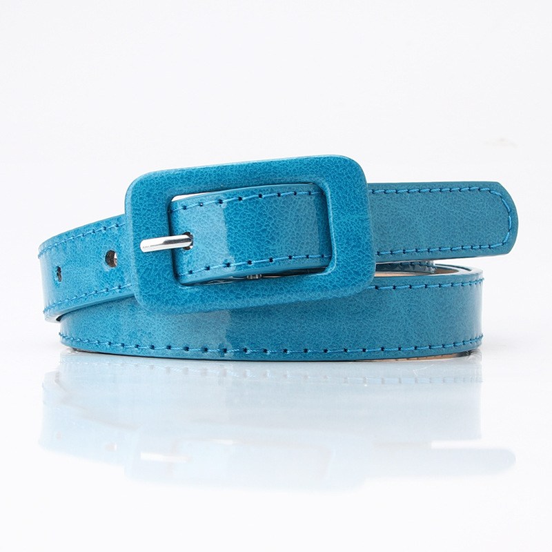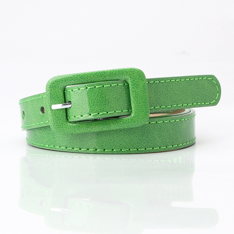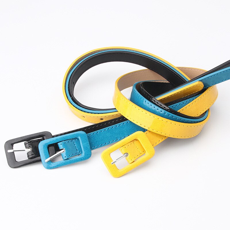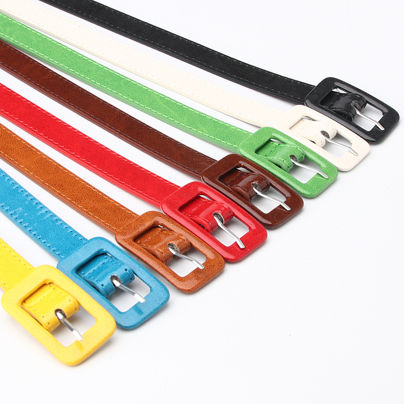 Ремень из искусственной кожи Женский, тонкий пояс с квадратной пряжкой с язычком для головы, эластичный пояс карамельных цветов, для джинсов, разных цветов