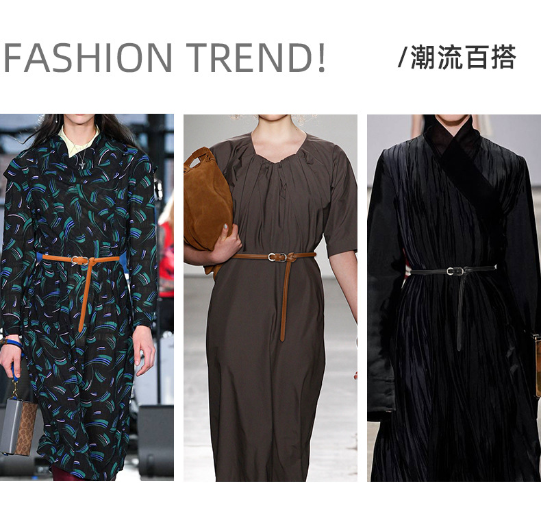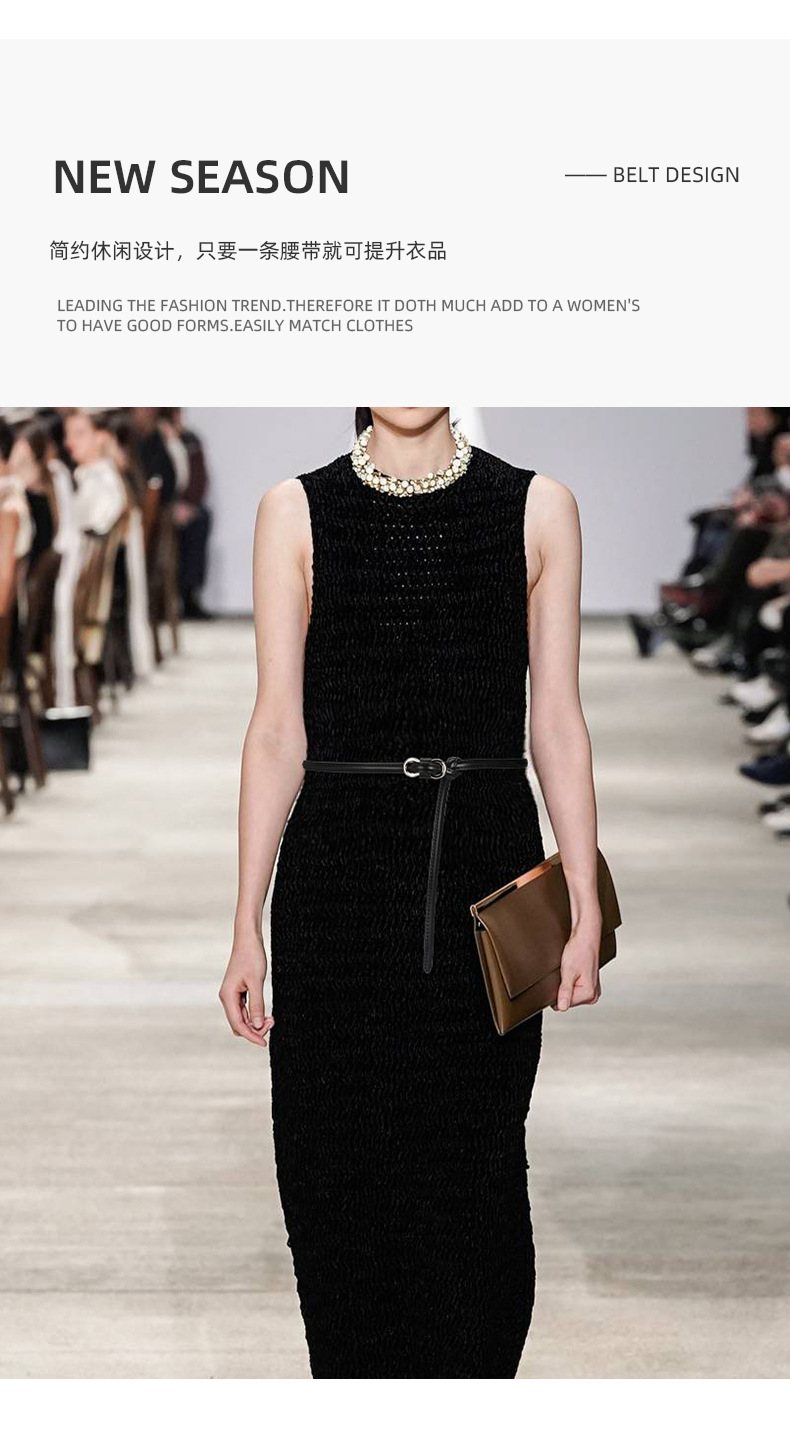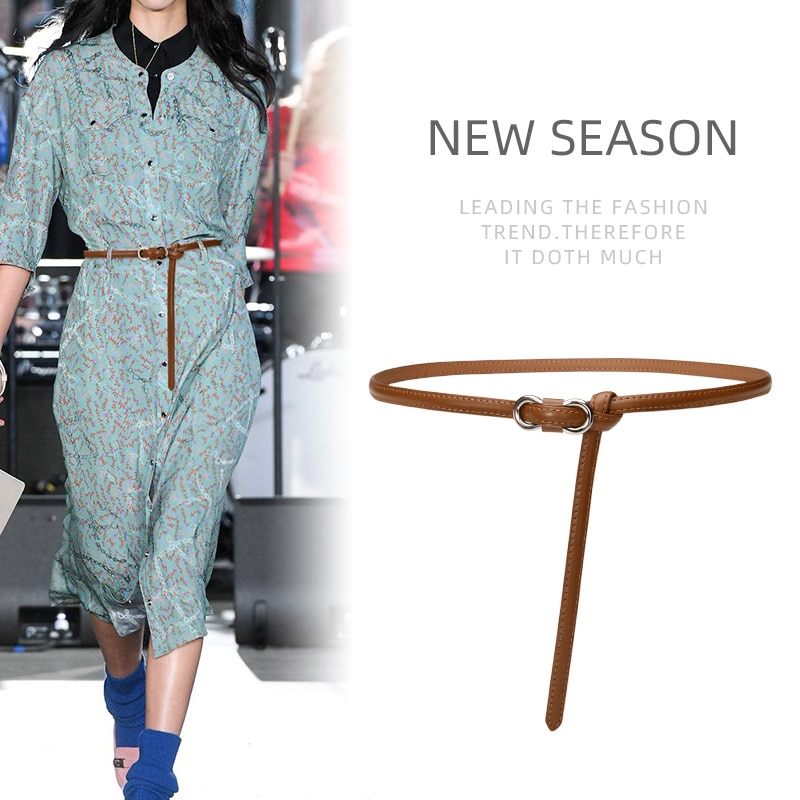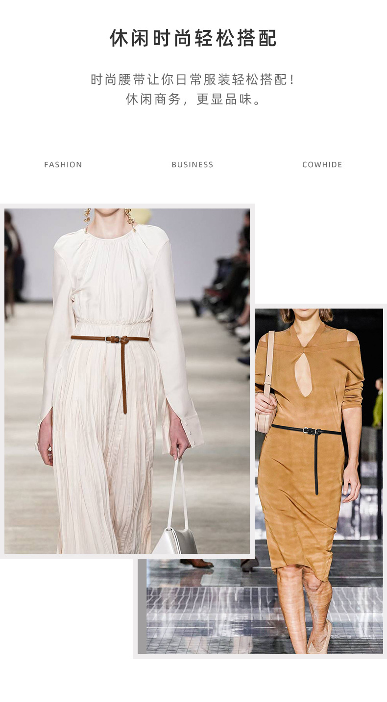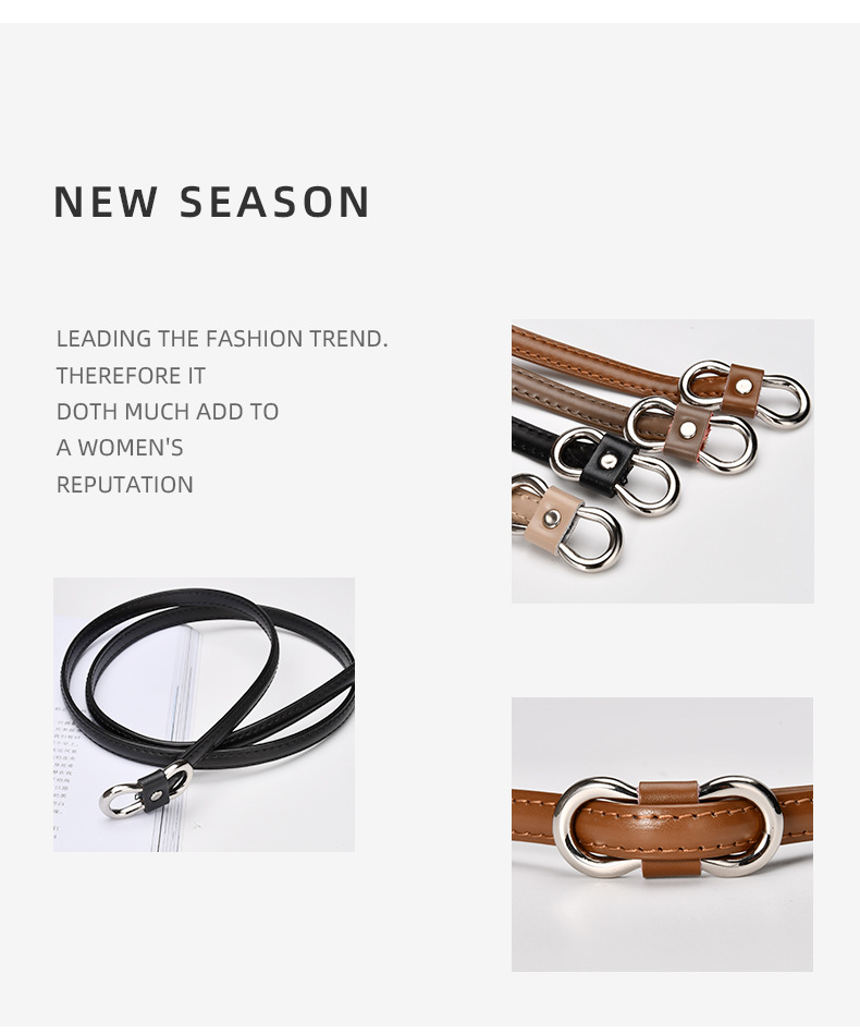 细皮带腰带女细装饰连衣裙收腰配裙子蓝色紫色粉色皮带夏季2021新款女士真皮细腰带无孔设计装饰带腰封连衣裙百搭二层皮女式皮带
