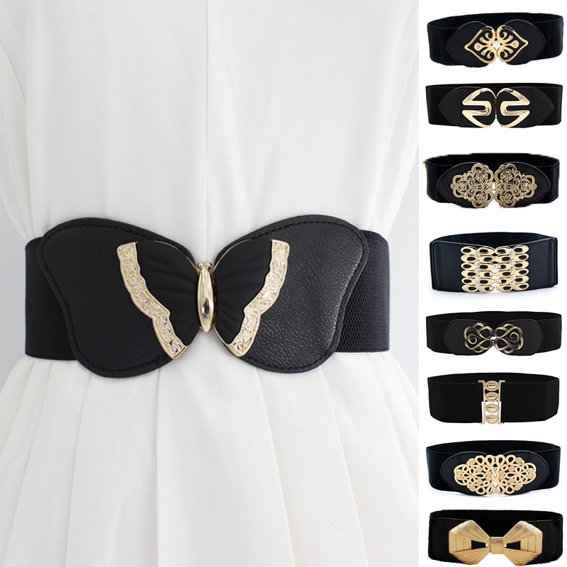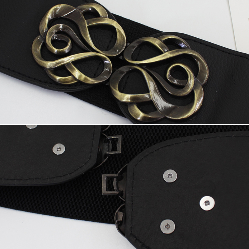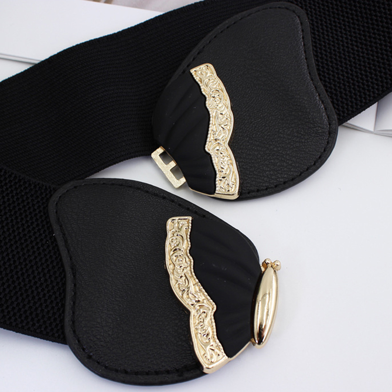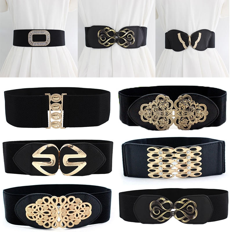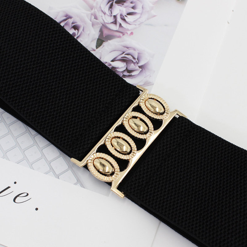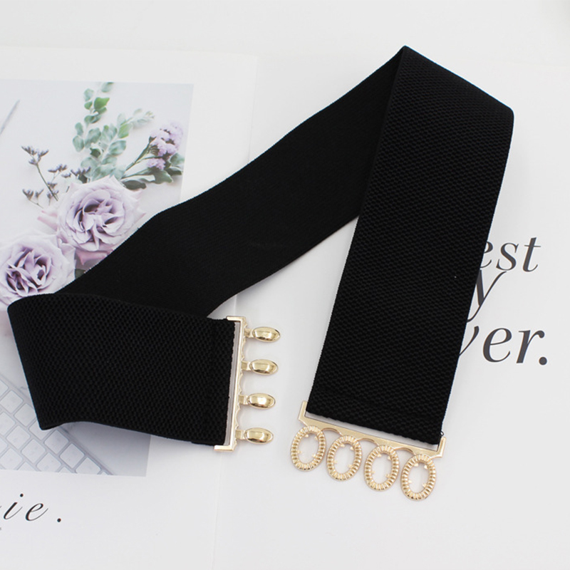 Широкий эластичный пояс большого размера, широкий пояс 65 см, Эластичный Классический черный пояс с золотой пряжкой, модный винтажный пояс шириной 6 см